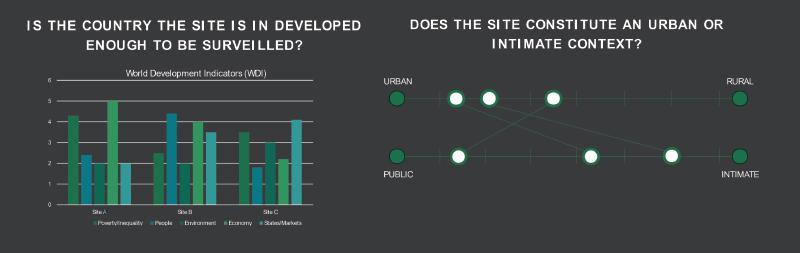 In an ever-increasing world of surveillance, privacy has often gone to the wayside under the guise of security. Surveillance creates an environment of suspicion and threat, which can cause people who are not engaged in any wrongdoing to change their behavior. This shift in order will inevitably become a paramount discussion as countries continue to further this trend. China alone accounts for 54% of CCTV cameras, meaning one lens for every two citizens. This thesis poses the question: How do we provide means of privacy through design, while maintaining the necessary amount of surveillance required for matters of security? Privacy is the state or condition of being free from being observed or disrupted by other people. The ability of an individual or group to seclude themselves or information about themselves, and thereby express themselves selectively. While surveillance is the monitoring of behavior, activities, or information for the purpose of information gathering, influencing, managing, or directing. The domain of privacy partially overlaps with security, and due to this, surveillance. The relevancy of this topic becomes more and more paramount as the world continues to move toward an ever-surveilled state. Through the research-based analysis of privacy and surveillance, possible interventions, policy, and context can be concluded to further the discussion of privacy vs. surveillance.