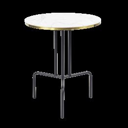 Kiteman Table in white or black marble glass with gold brushed edge.