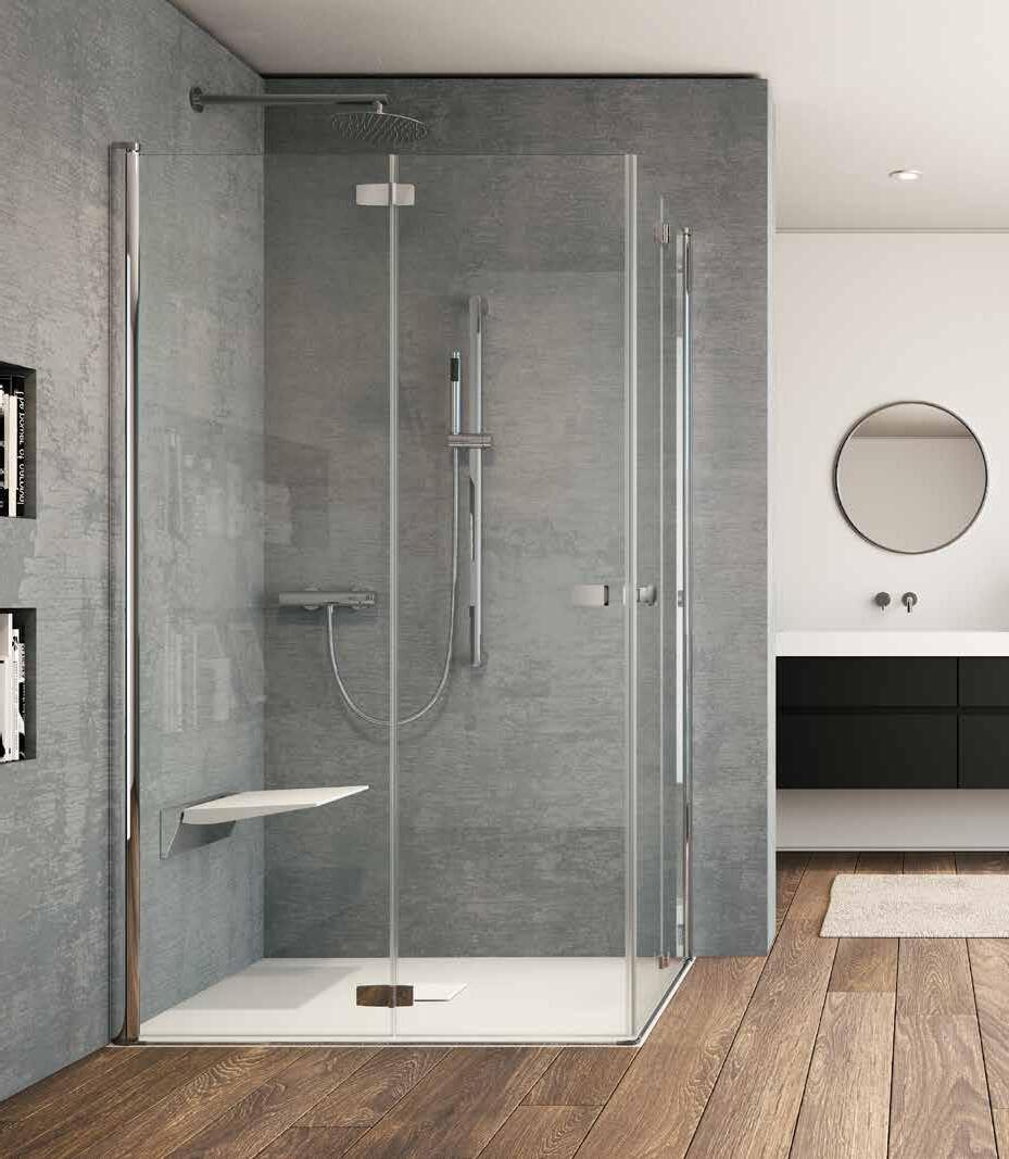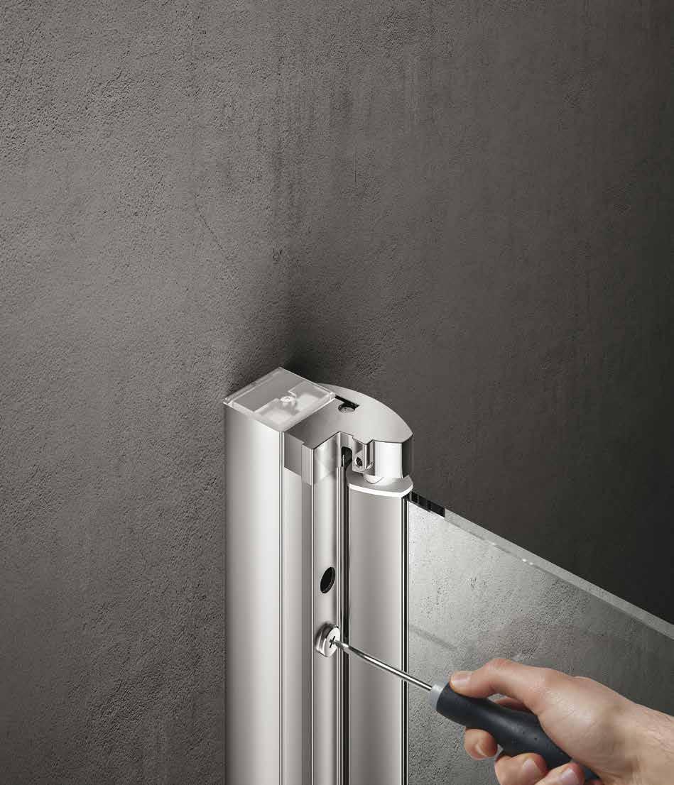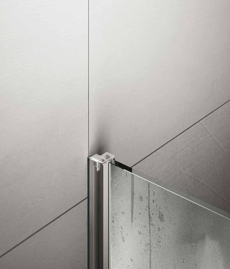Our shower enclosures can be mounted on their vertical wall pro les using a water and UV resistant PVC seal without silicone. Through the omission of silicone there is no breeding ground for mold, germs and bacteria, we are therefore able to guarantee maximum hygiene and cleaning.
