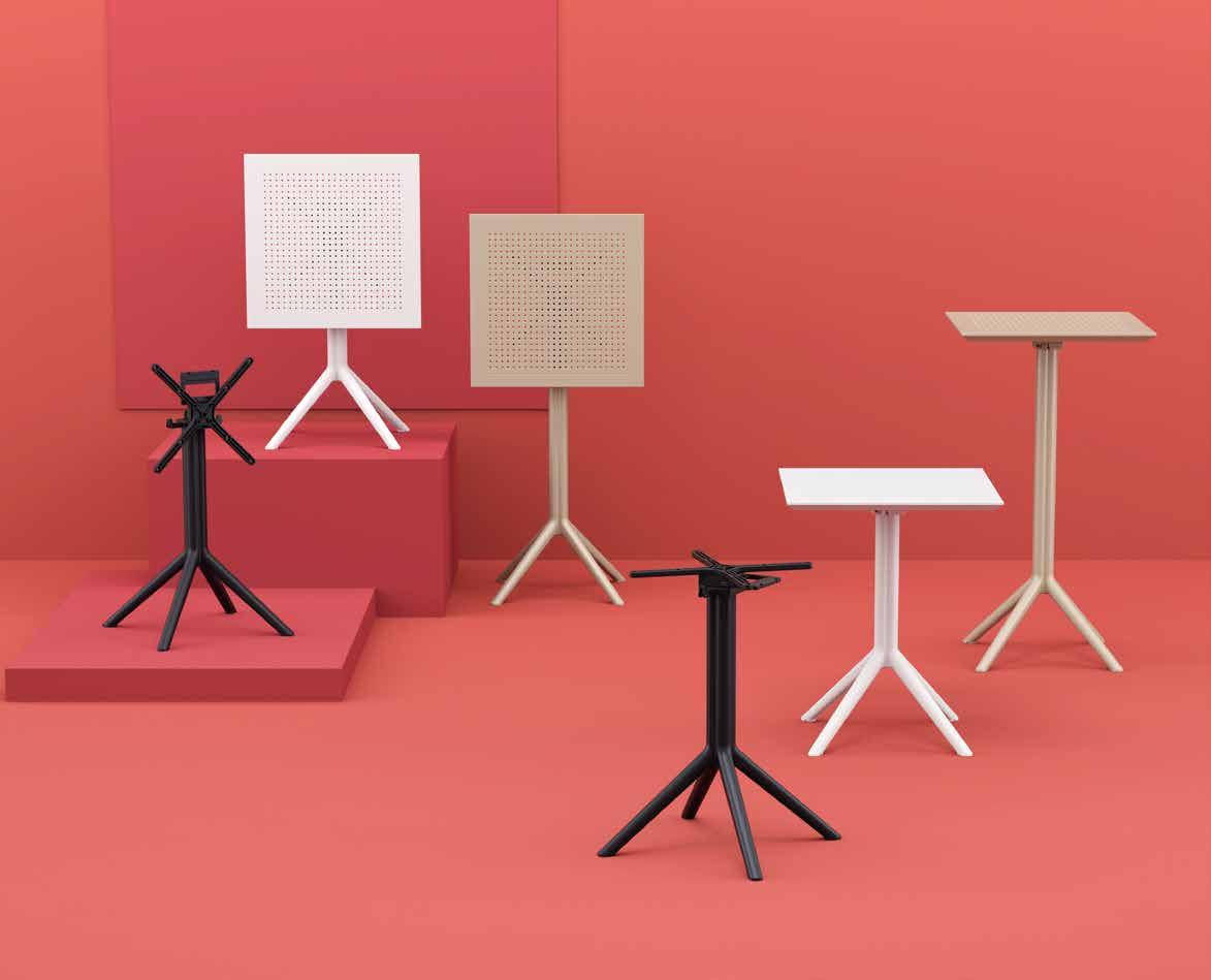HPL table tops, thickness 10 mm. Available on stock in sizes: 69x69, 79x79 cm.