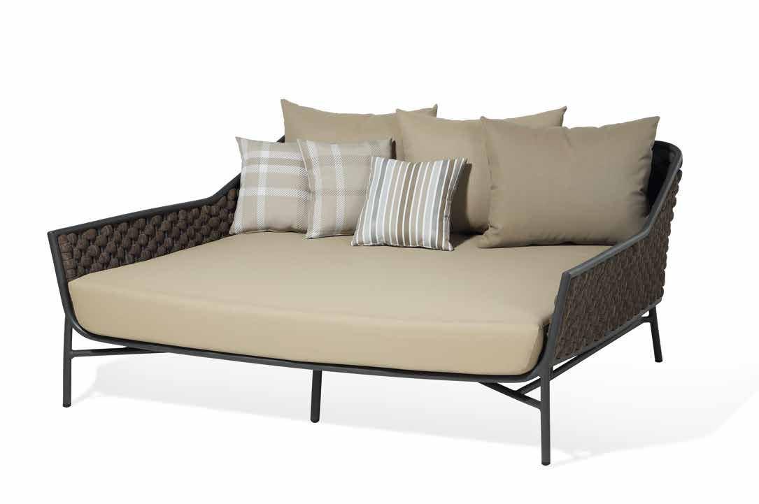 DivanoLounge® lavora con i tessuti Sunbrella®, trattati appositamente per non deteriorarsi e/o modificarsi nel tempo, con l’esposizione agli agenti atmosferici.