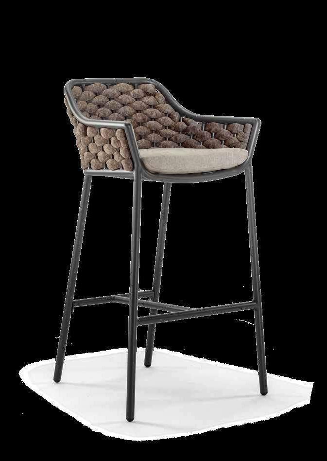 Aluminium barstool covered with textylene and rubber rope. Textylene or Olefin cushions.