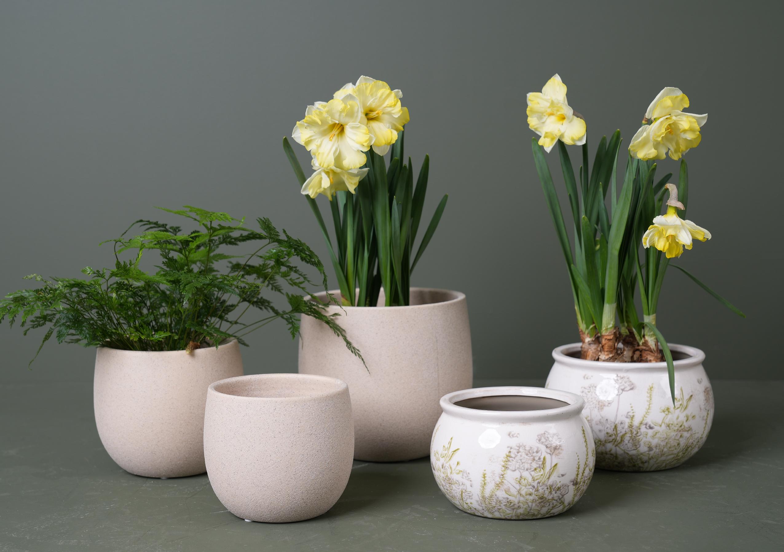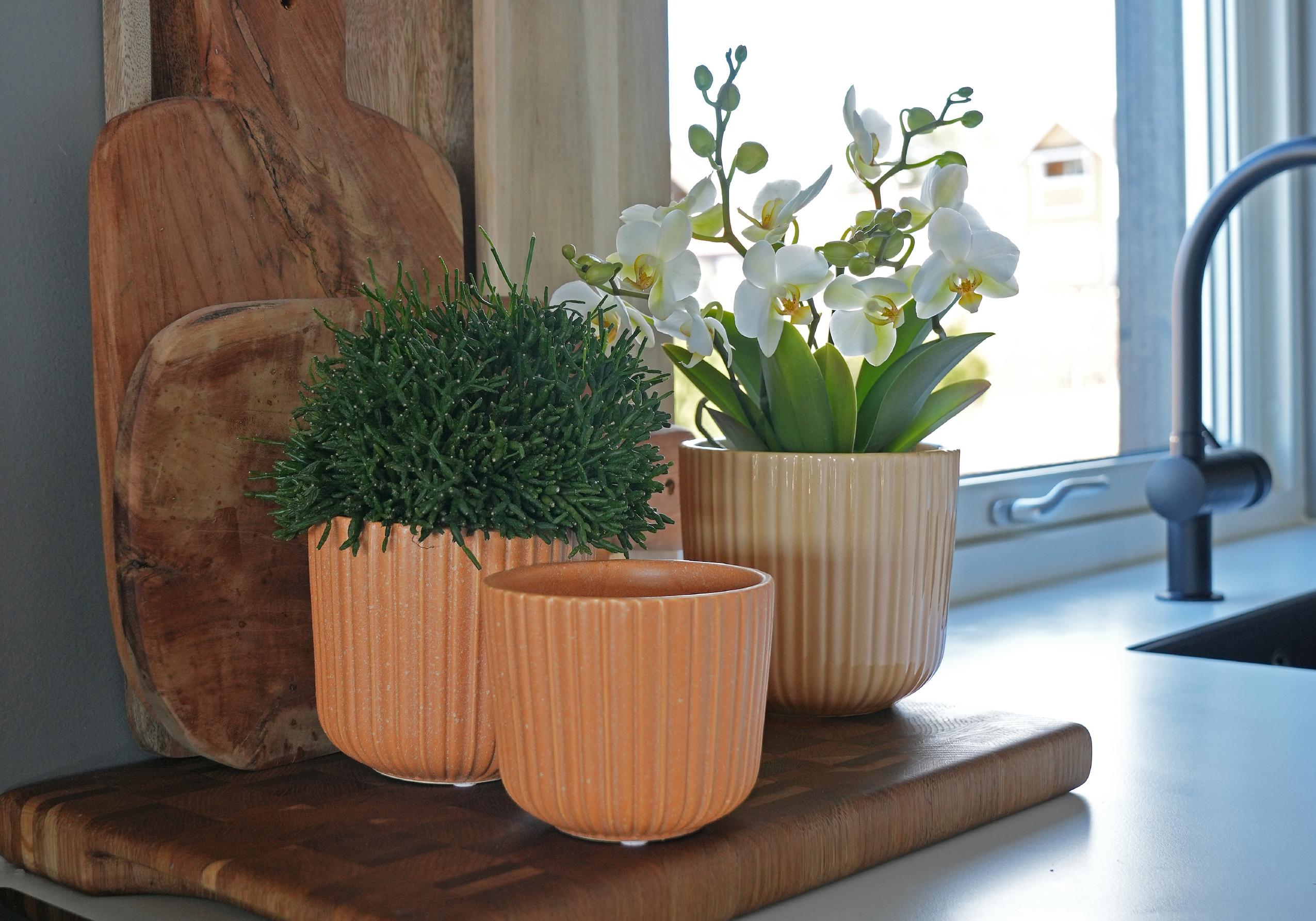 Her får du stilrene underlag og potter i rolige nyanser som beige, sort og grønn – laget for å passe inn overalt, og la blomster, planter og detaljer få hovedrollen.