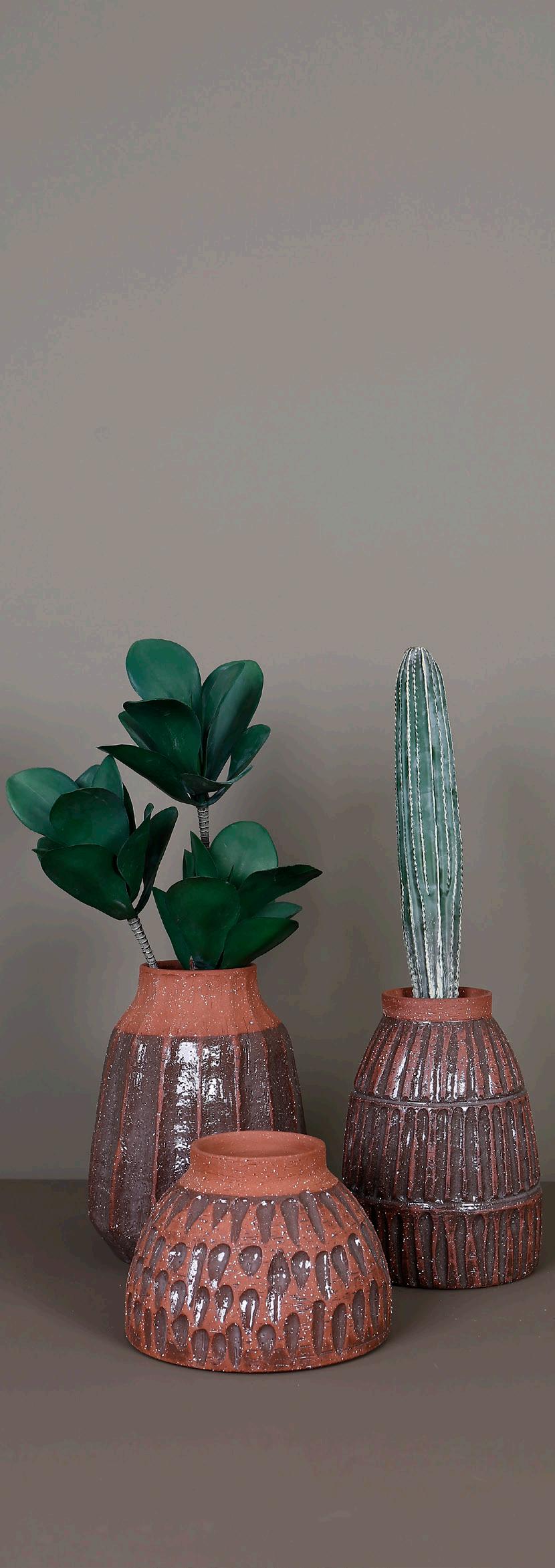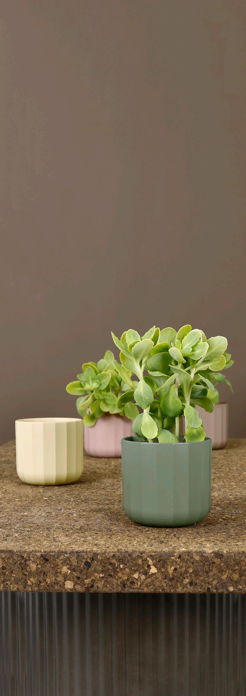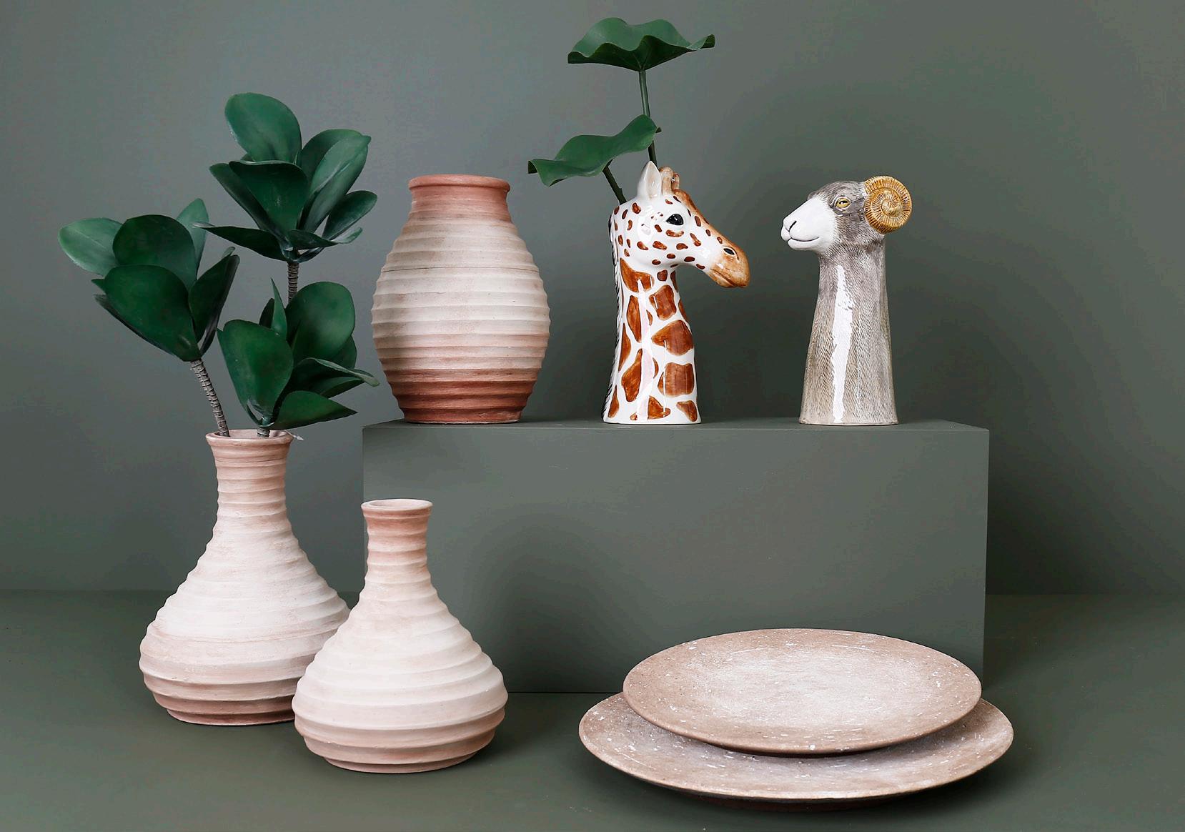 Trenden med farver, materialer og figurer fortsætter i forårets 2025 kollektion. Jordfarver, terracotta, grønne nuancer og lidt ru overflader. Vi omgiver os med tidløse og naturlige materialer, der går i tråd med vores fokus på bæredygtighed og følelsen af, at naturen giver os ro.