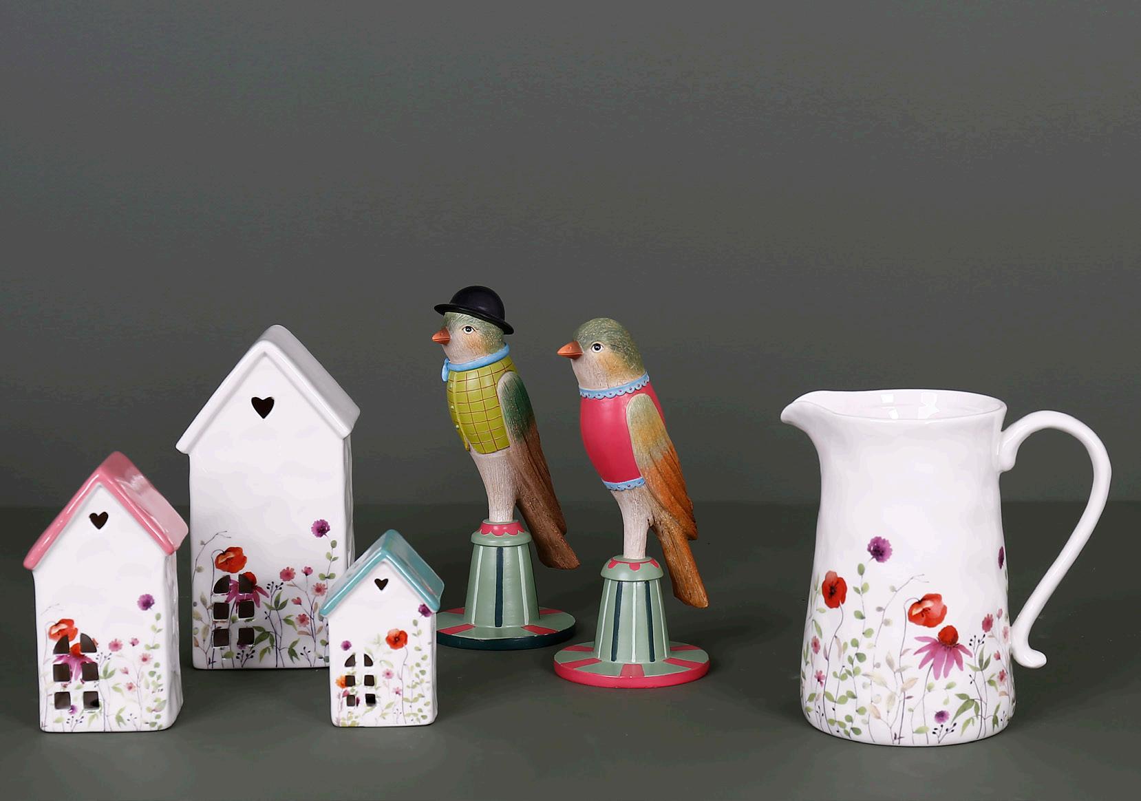 Bærekraft betyr også at vi skal ta vare på det vi har. Derfor ser vi også en økende grad av interesse for å blande ulike stilarter, farger og tidsepoker. Vi skal omgi oss med det som betyr noe for oss, som gir oss en god følelse eller liker uavhengig av trender. Vårens kolleksjon spenner derfor fra sart romantikk med pasteller, botaniske mønstre og fugler, til retro 70-tallsinspirert keramikk og dekorelementer i knallfarger!