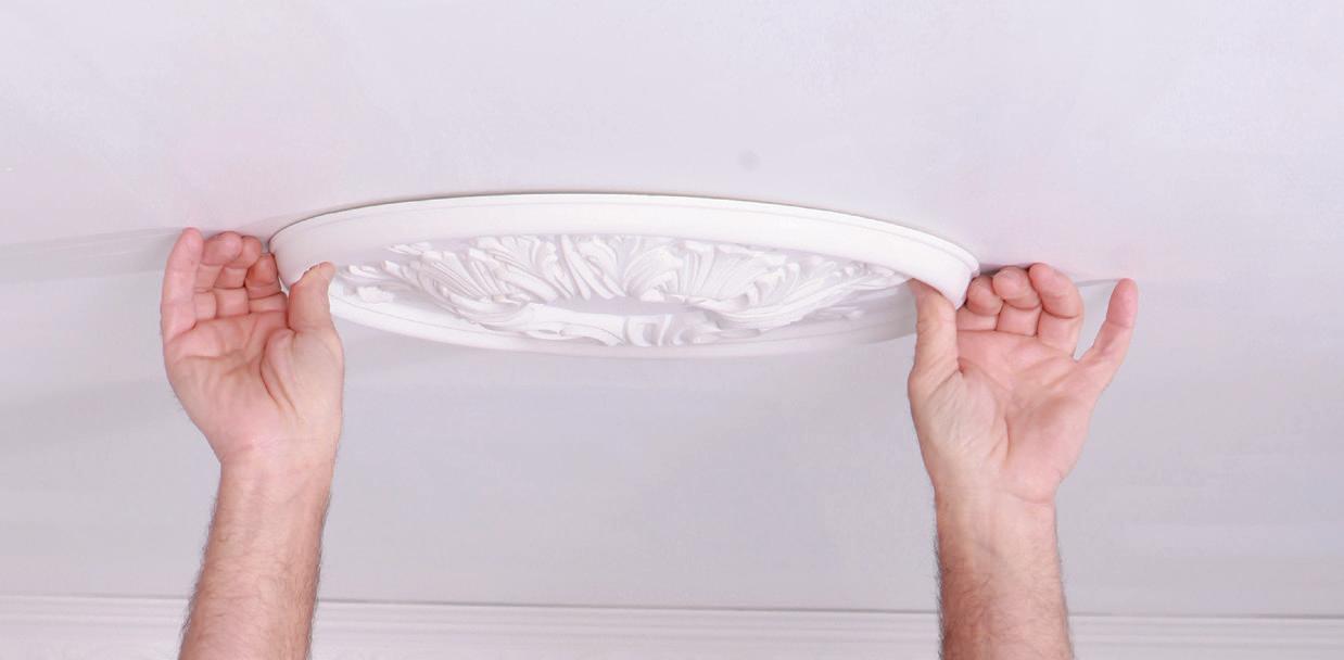 Anbringen von Dekorationselementen und Platten aus Styropor, Polyurethanschaum, Holz und Gips.