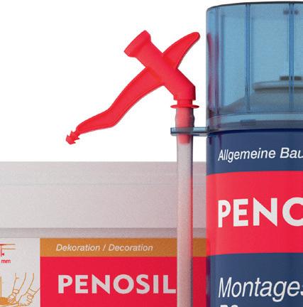 ■ Nicht ausgehärteter Schaumkleber an Händen und Kleidung kann mit Penosil Reinigungstüchern 941 entfernt werden.