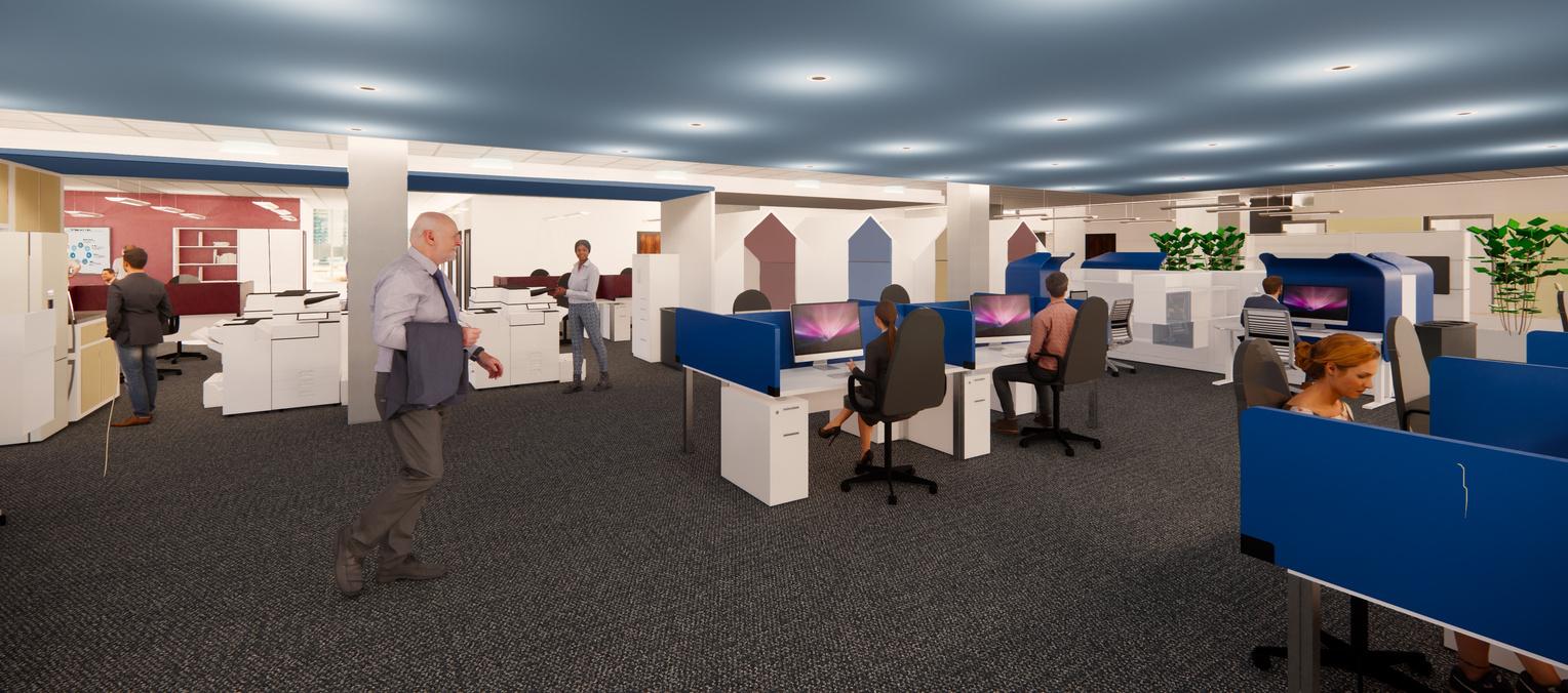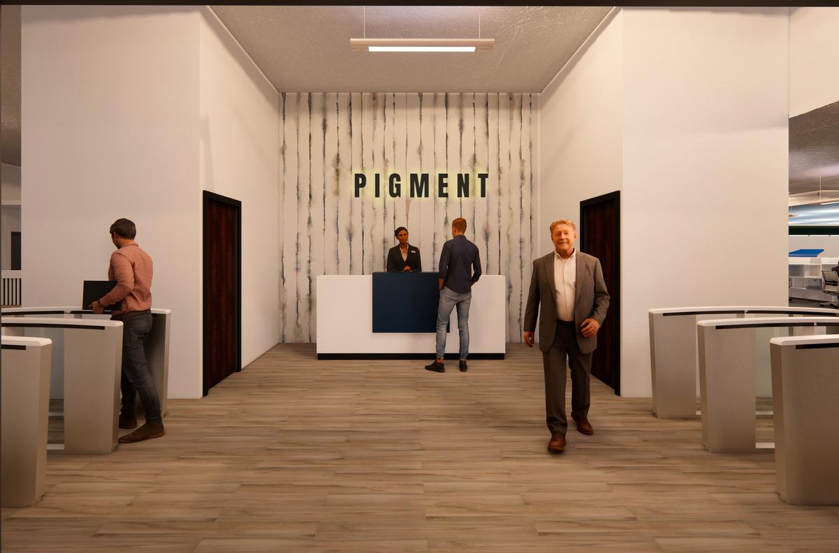 TSponsored by Vocon, "Pigment" is a paint and coatings manufacturer based in Cleveland, Ohio, seeking to re-enter the workspace post-COVID-19 with a fresh perspective on reinventing the workplace. Collaborating closely with a partner during the design process, our aim is to foster collaboration within the hybrid workplace by facilitating connections between departments to encourage partnership. Incorporating collaboration zones throughout the office enables seamless gathering and teamwork. Our design concept focuses on fostering unity within the workplace environment.