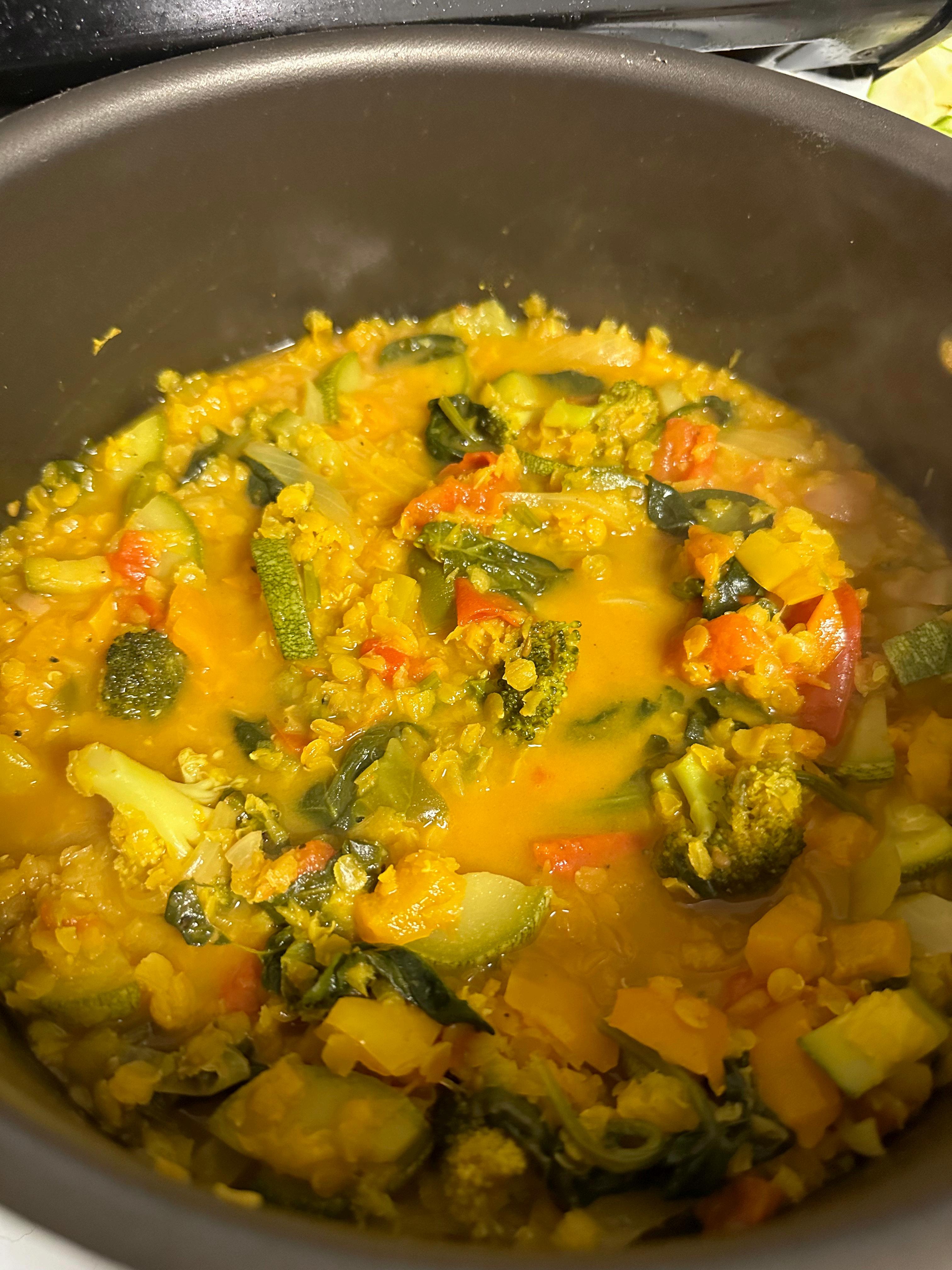 Remove from heat once the vegetables are cooked through and the flavors have melded together.