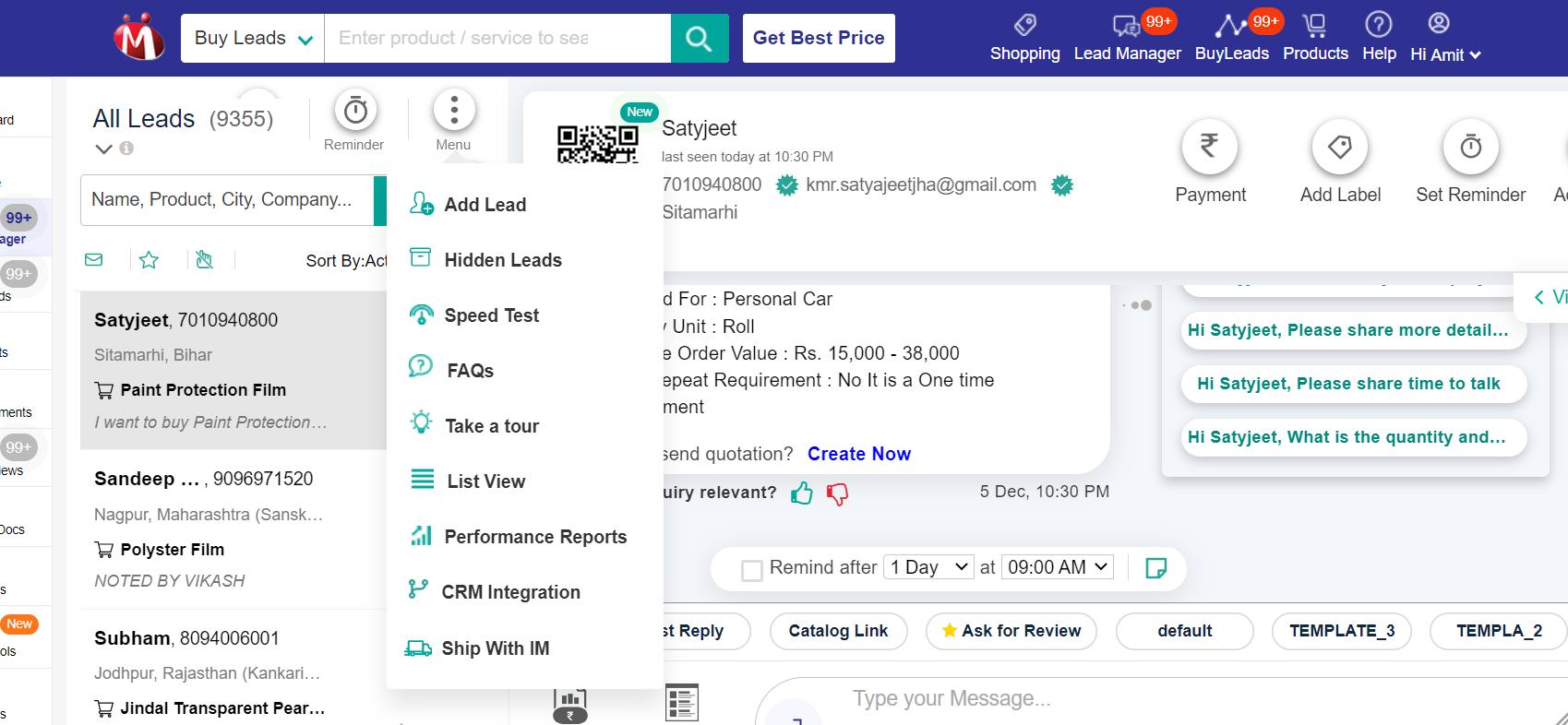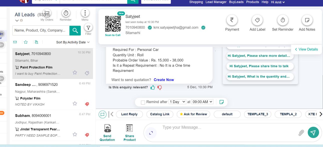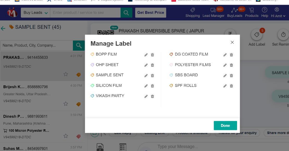 STEP 6: SEND RATE TO CUSTOMER OR FORWARD LEAD TO UPPER SALES DEPARTMENSTEP 7: ADD LABEL OF PRODUCT NAME FOR SORTING.STEP 8: CONTACT NEXT LEAD (EVERY BUY LEAD MUSTT BE ATTENDED WITH PROPER NOTES OF REQUIREMENT, IF LEAD IF OF NO USE, WE CAN DELETE IT)