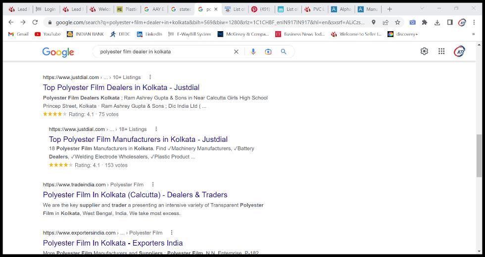 We can find best leads on Google by searching for example Trader of surface protection film or Supplier of surface protection film or whole seller of polyester film or OHP sheet supplier in Bangalore or Surface protection film dealer in Kolkata etc