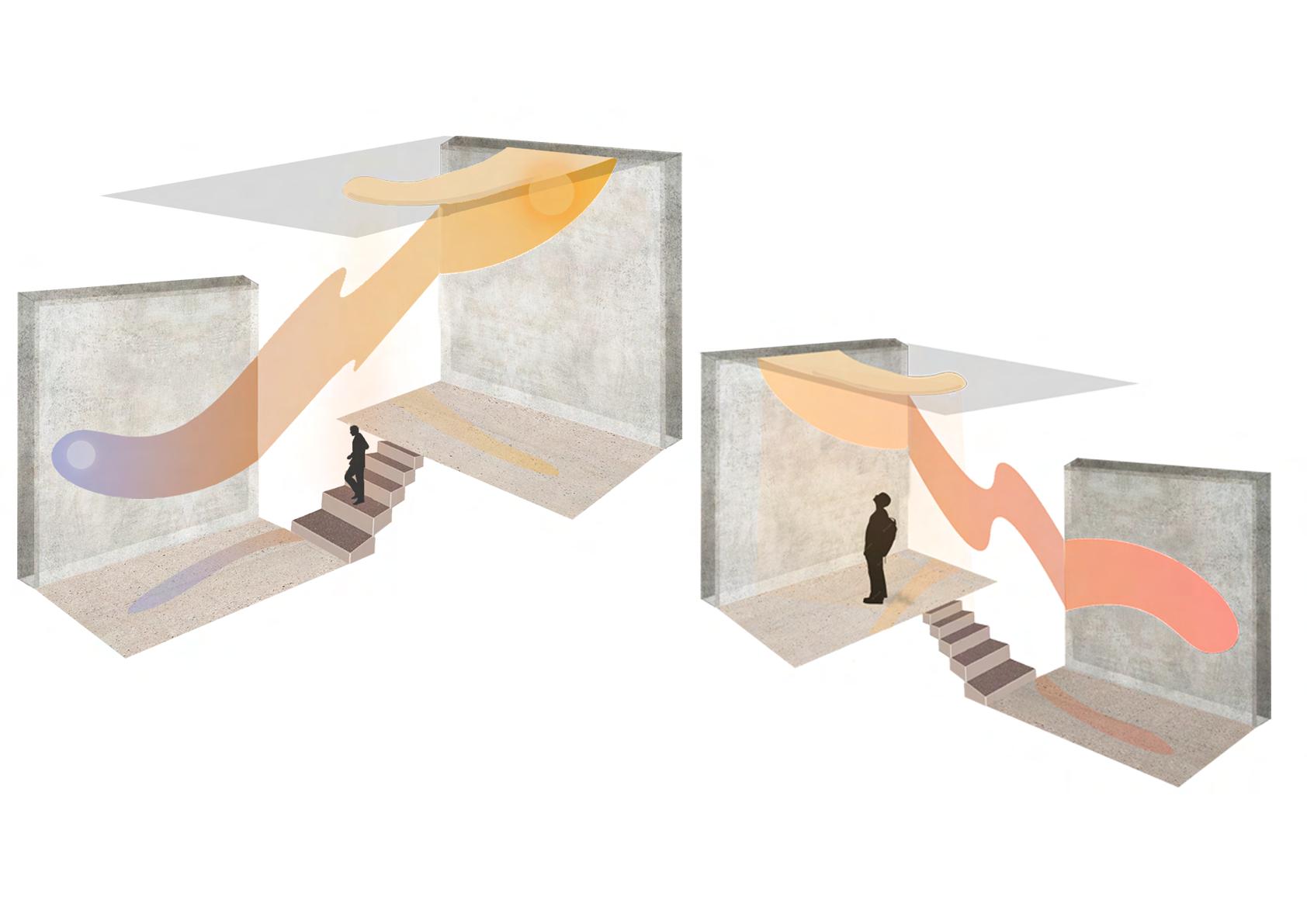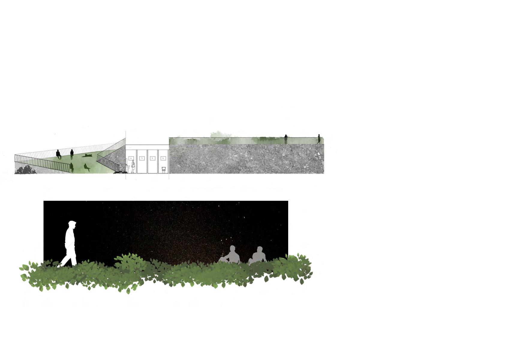 ETHER IS MADE UP OF SERIES OF SPACES THAT EACH REFLECT THE STRIKING FEATURES OF THE SKY WITH A UNIQUE APPROACH. THE STRUCTURE ENCOURAGES PEOPLE TO TAKE A MEANINGFUL BREAK FROM THE BUSYNESS OF LIFE, HENCE PROMOTING WELL-BEING, PERSPECTIVE, CREATIVITY, AND A DEEPER CONNECTION WITH OURSELVES AND THE WORLD AROUND US. IT IS A SIMPLE YET POWERFUL PRACTICE THAT CAN ENRICH OUR LIVES OF YOUNG ADULTS IN CANTERBURY IN NUMEROUS WAYS.
