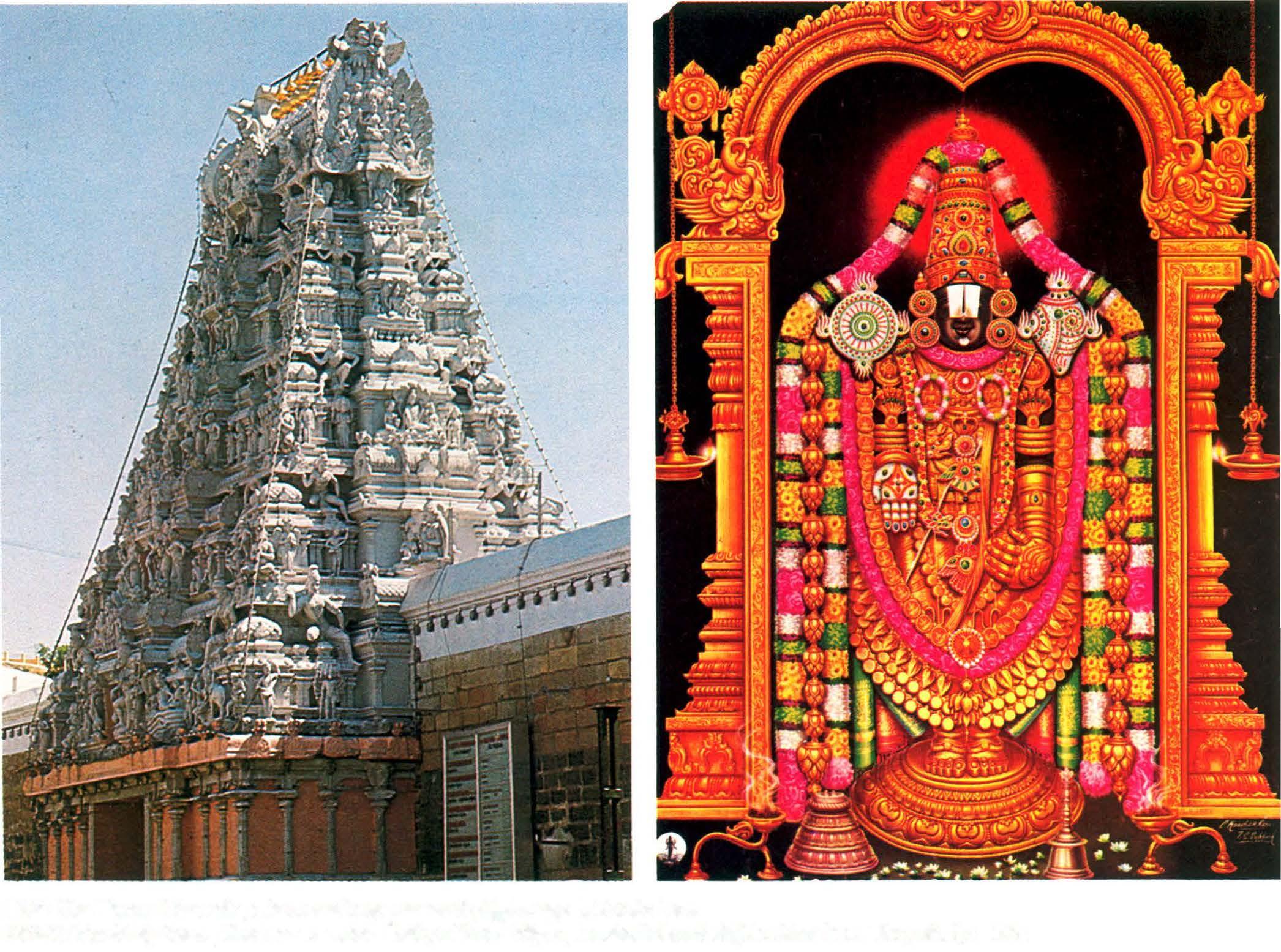 RIGHT: Vyenka!esvara, the four-handed Deity of Lord Vi�f!u, located about eight miles from Tirupati. (p. 327)