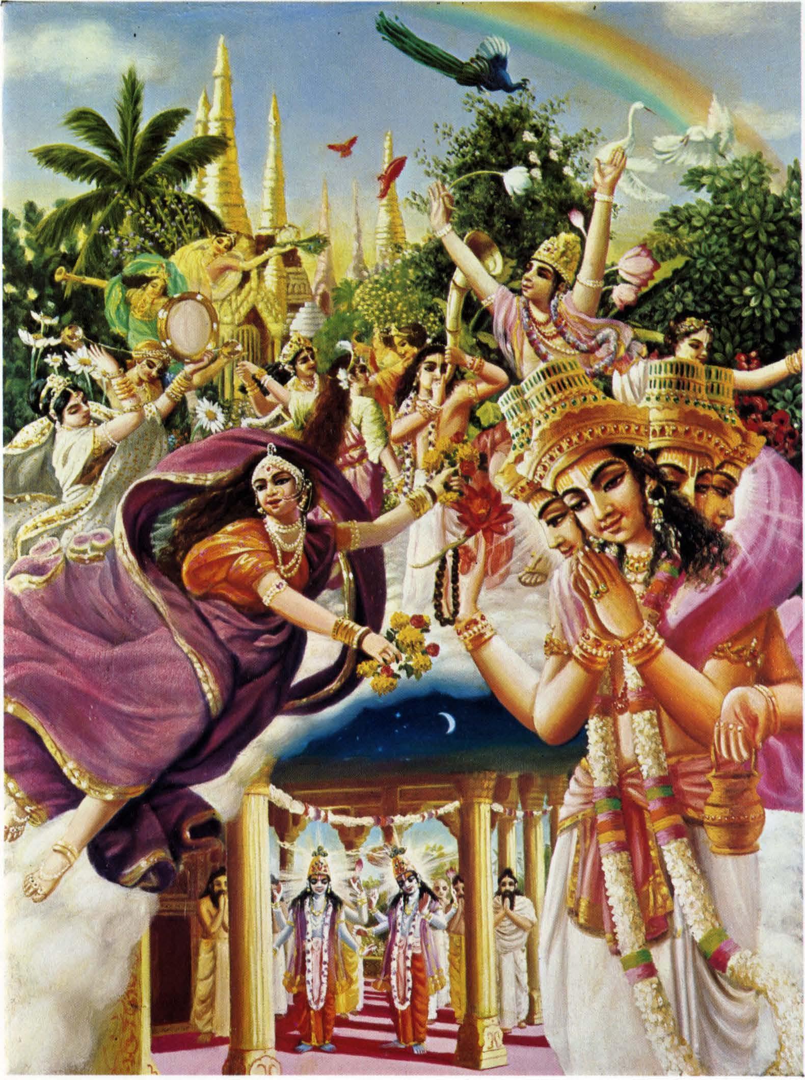 .Plate 2 ln the heavenly planets, bands began to play, and they showered flowers from the sky. Great demi ods like Brahma also offered their res ectful ra ers. a e 38
