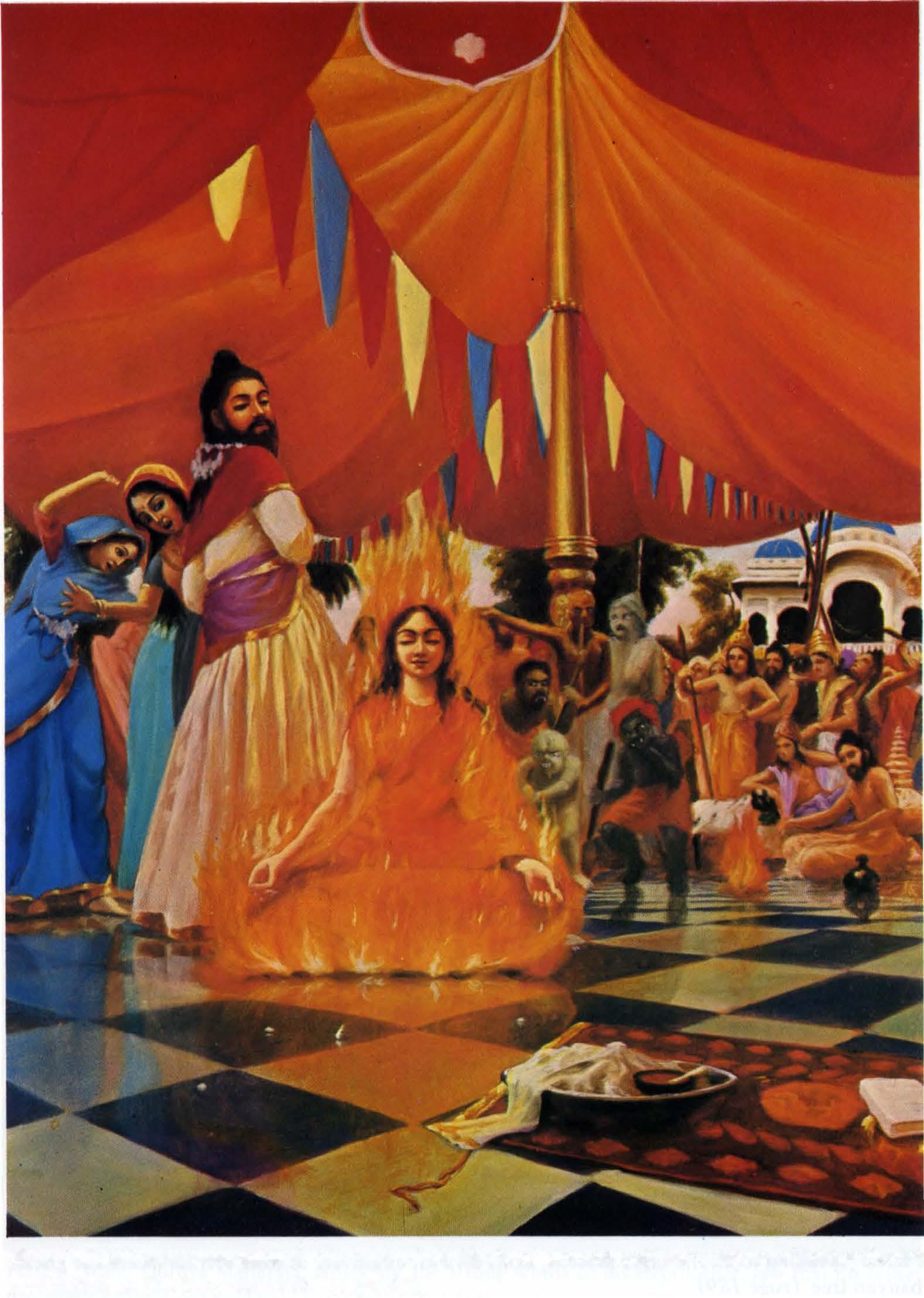 Plate 4 Satl became completely cleansed of all taints of sin and quit her body in a blazing fire by meditation on the fiery elements. (page 141)
