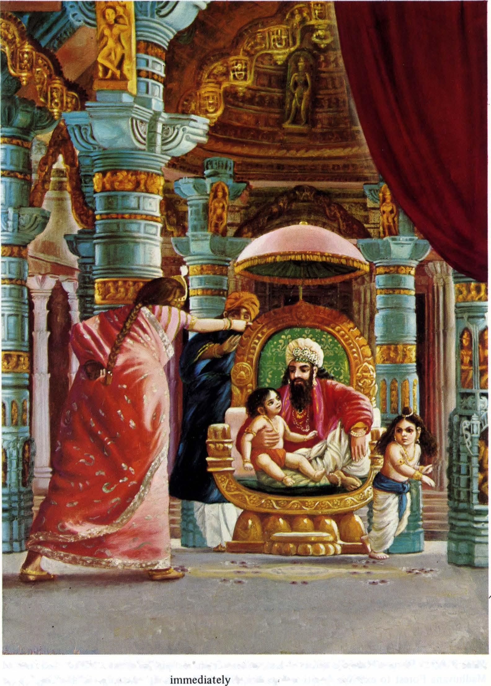 When Dhruva Maharaja, struck by the strong words of his stepmother, saw that his father was silent and did not rotest, he immediately left the alace. (page 290)