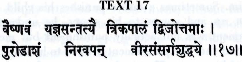 Sometimes a sonless person offers his daughter to a husband on the condition that his grandson be returned to him to be adopted as his son and inherit his property. This is called putrikii-dharma, which means that by execution of religious rituals one gets a son, although he is sonless by his own wife. But here we see extraordinary behavior in Manu, for in spite of his having two sons, he handed over his first daughter to Prajapati Ruci on the condition that the son born of his daughter be returned to him as his son. Srila Visvanatha Cakravarti Thakur comments in this connection that King Manu knew that the Supreme Personality of Godhead would take birth in the womb of Akiiti; therefore, in spite of having two sons, he wanted the particular son born of Akiiti because he was ambitious to have the Supreme Personality of Godhead appear as his son and grandson. Manu is the lawgiver of mankind, and since he personally executed the putrikii-dharma, it is to be accepted that such a system can be adopted by mankind also. Thus, even though one has a son, if he wants to have a particular son from his daughter, he can give his daughter in charity on that condition. That is the opinion of Srila ]iva Gosvami. TEXT