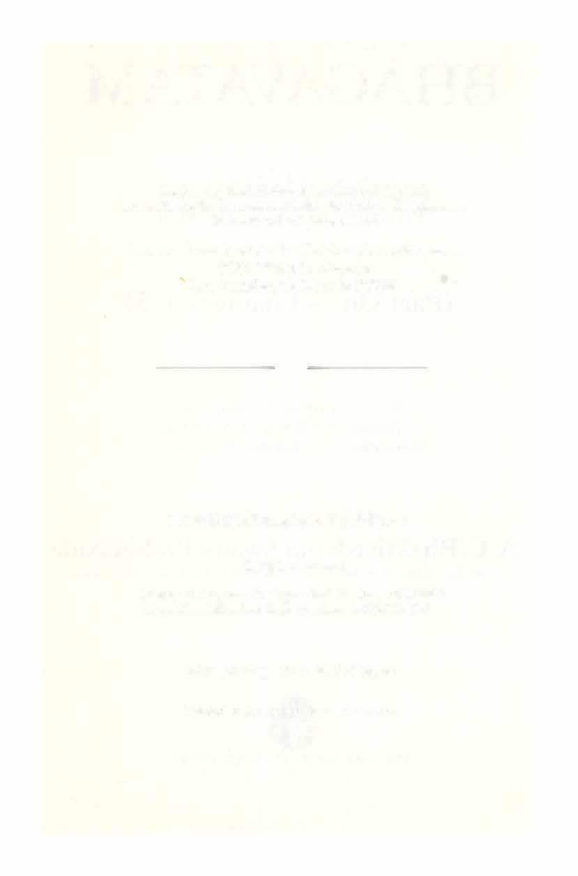 first widely available to the English-speaking public. It is the product of the scholarly and devotional effort of His Divine Grace A. C. Bhaktivedanta Swami Prabhupiida, the world's most distinguished teacher of Indian religious and philosophical thought. His consummate Sanskrit scholarship and intimate familiarity with Vedic culture and thought as well as the modern way of life combine to reveal to the West a magnificent exposition of this important classic.
