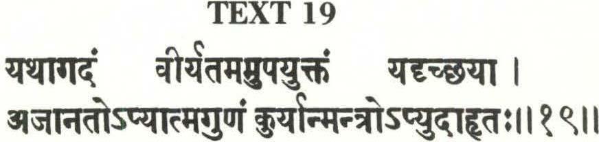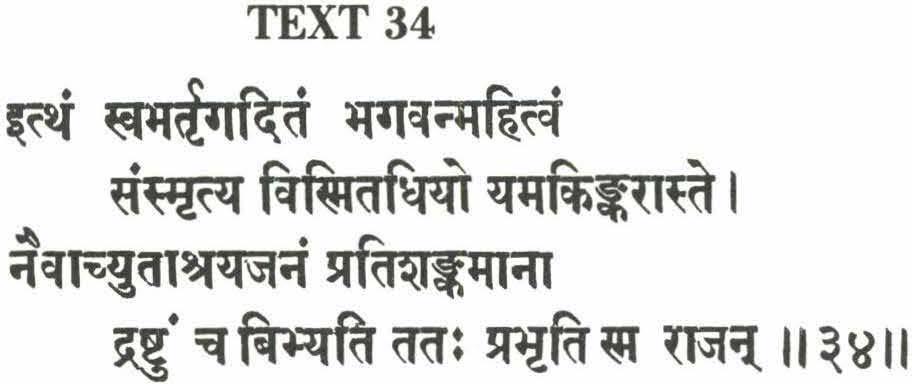 Ye 'nye 'ravindii�a vimukta-maninas, verse quoted, 18-19