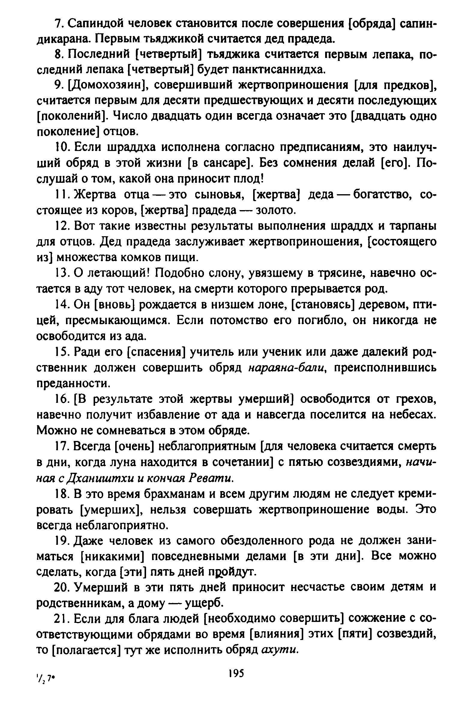 Интересно, что перевод фрагмента из второй книги ГП появился и в России: его напечатал журнал «Атеист» в 1930 г. Он был сделан Б.Семичевым, по всей видимости с санскрита, и снабжен статьей об индийской эсхатологии [90, с. 111-125].