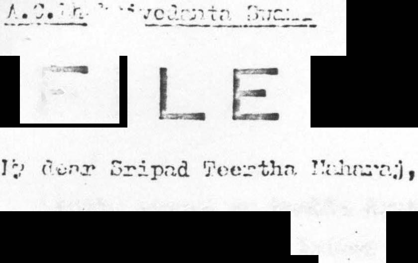 I an so glad to recei'Te yourveryaffectionateletter;o:f:the 3rd im::t.::mt ·and have noted the contents:caratully$· YeaI .hD.ve got ·t.hia nice -cy-perrriter by the Orace of' the Lord and Iamw:cymuoh· sa ' tiafied lfith1t rrorY.J.ng. :Before rece iving your letter undor reply I•ha:vo sent two·letters both.·toyou �d Gop?-.1 . I understand thatyou.havereceived,them. .·In one; of them. I have· requested Go:pal to despatch 25· sets of. booJr...a to. Pararro-u· J3ook Oall!.ery and.Iama.m:i� to.kr..O'N' if' the books are al:r·eady clesna·�ched.;, . · . . · . . , _ ' ; .. · 1 ·· .