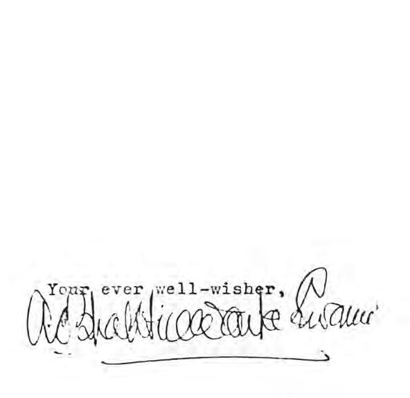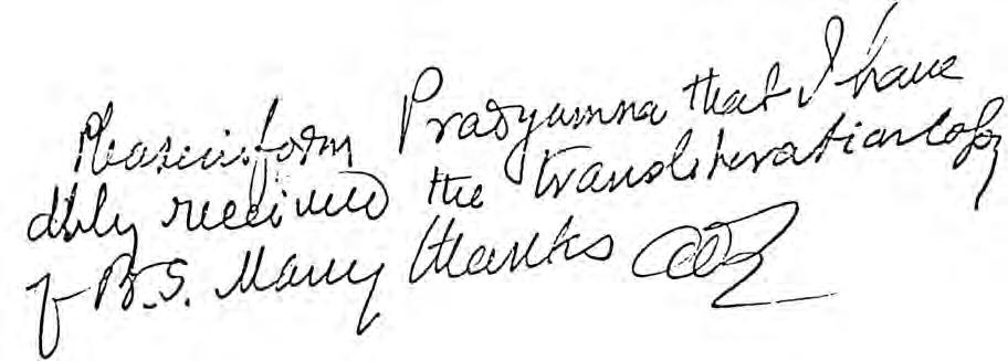 Please accept my blessings. I am in due receipt of your recent letter and I have noted the contents with pleasure. Your kind thoughts \·ihich you exyressed are very nice and encouraging to me. Also you have asked some intelligent questions and I am ans\·Tering them here'..