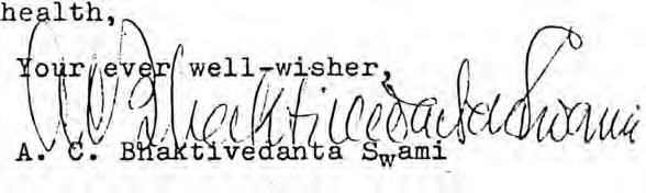 I have sent to JaGad i sha his beads duly initiated upon by me and I ho�e that he has r e c eive d them by now. Pl e as e offer n;y bl e s sins s to Erne stine , i·�r. :Z:c-ic, Bhurijana and all others �1o are helping you at your c e n t e r . I hope that you are all in v e ry good health.