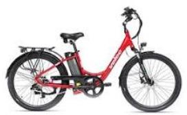 Standard equipment includes front and rear fenders, front and rear LED headlights, rear rack, adjustable stem, fork with suspension, a digital console, tires with antipuncture strips and front and rear hydraulic disc brakes with motor cut-out. Offered in red or titanium.