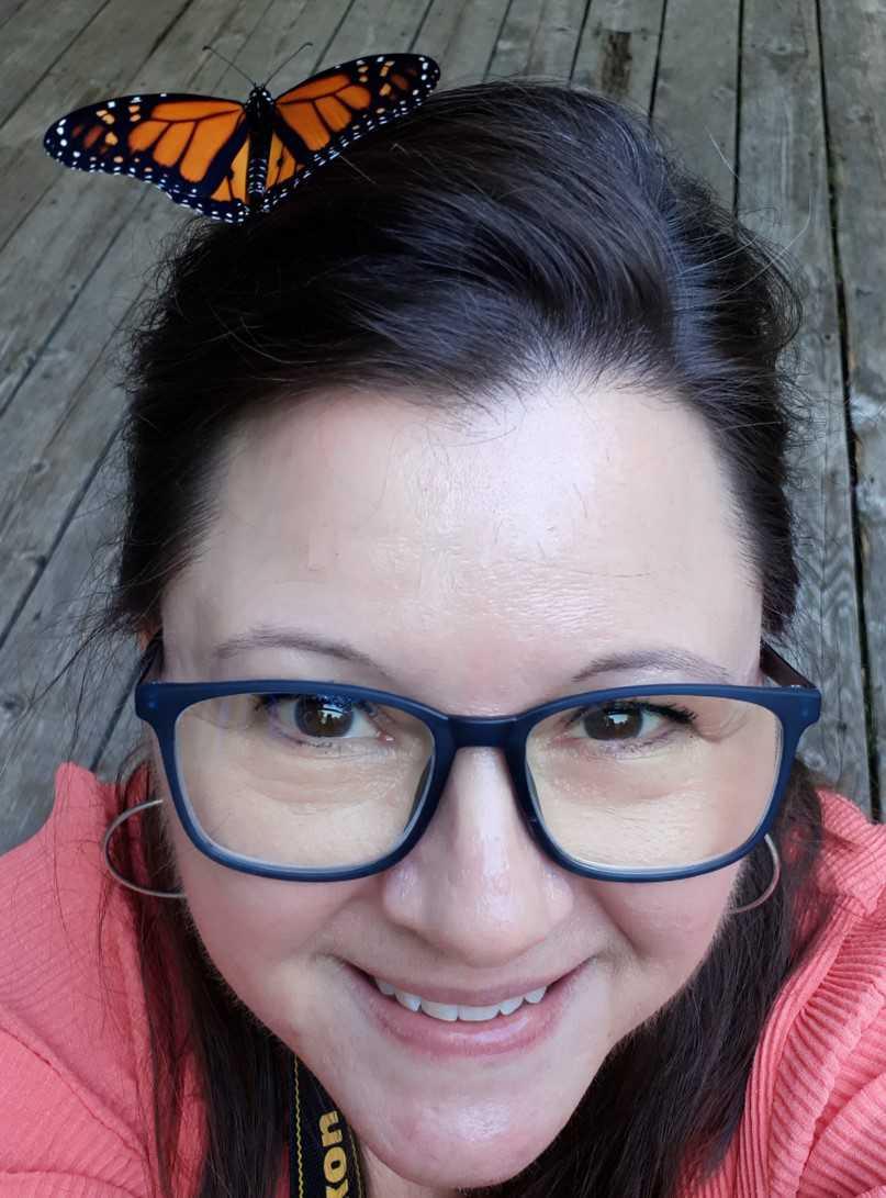 This is Krista. She loves all creatures like dogs and birds and squirrels and bees and especially butterflies.