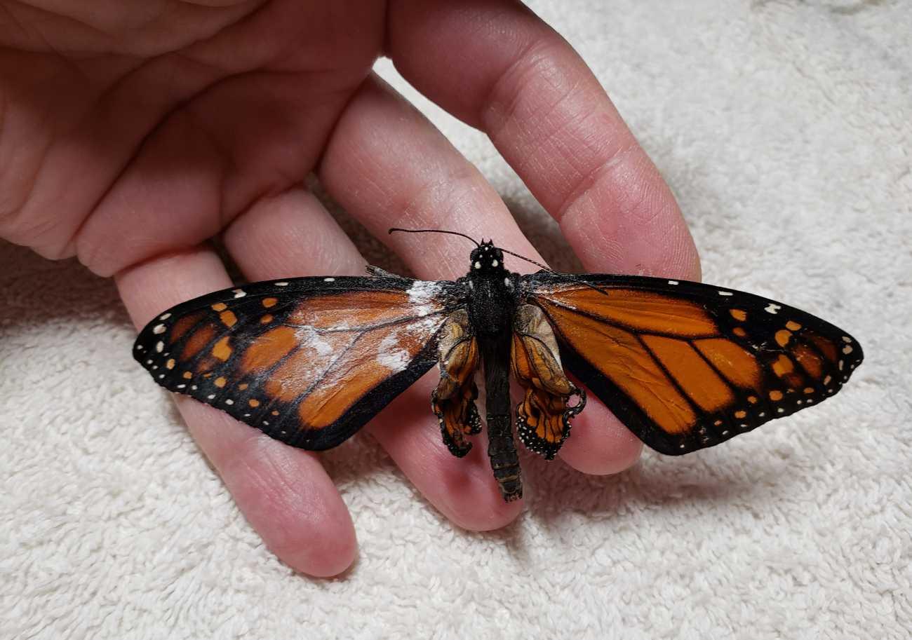 Once again, she did some research. This time was to learn how to perform a wing transplant. A month earlier, she had found a butterfly that hadn’t survived a cold snap, so she had a set of perfectly intact wings to give to her little friend.