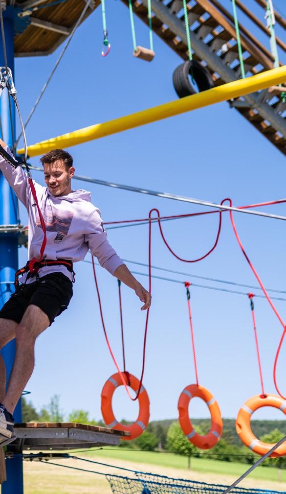 KristallTurm ®高空绳索乐园能同时满足您全家人的运动需 求和乐趣,我们的儿童攀爬区域为小小探险家们提供安全 有趣的体验,而高空攀爬区则是大孩子和成年人的挑战乐 园。