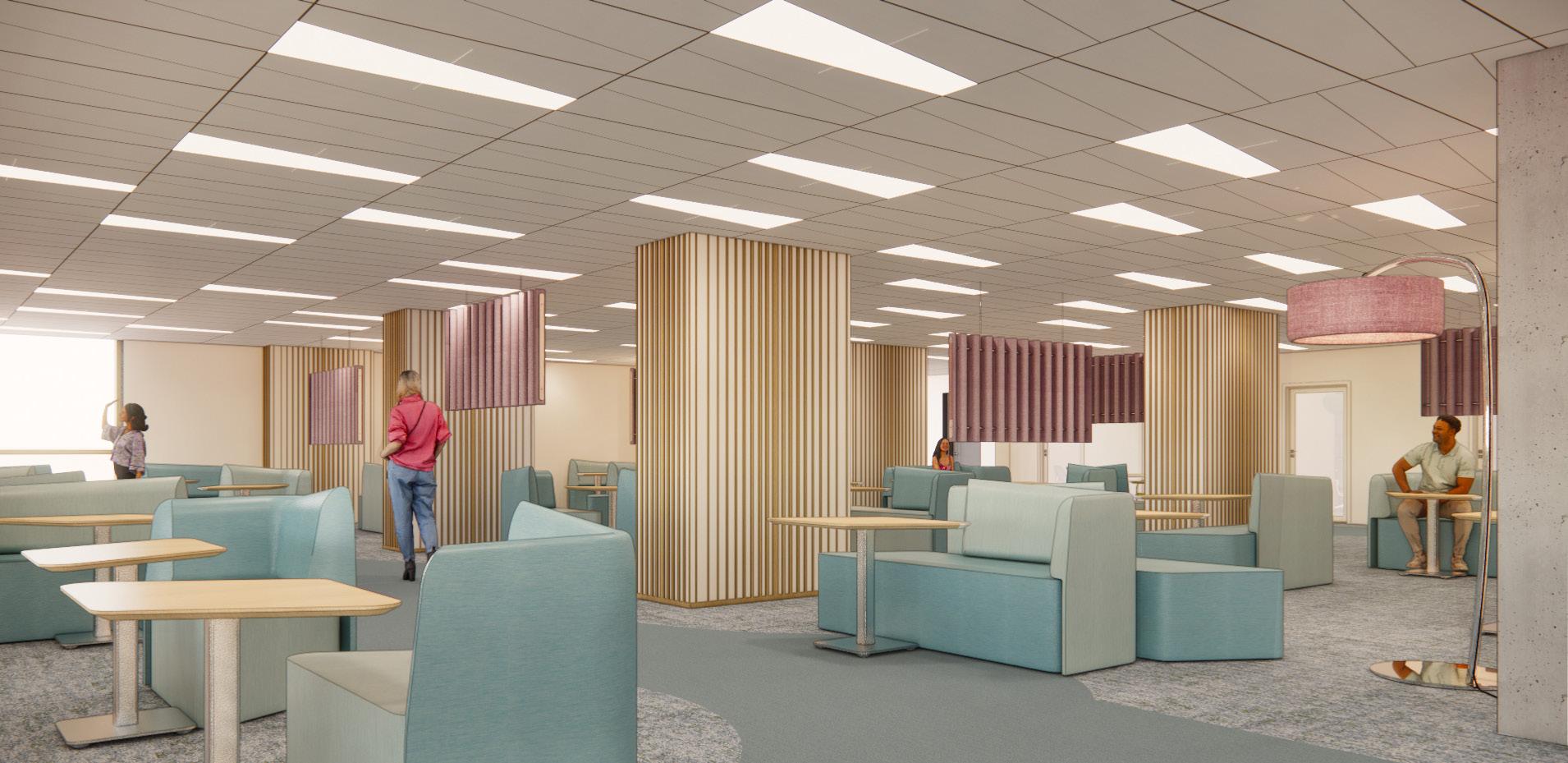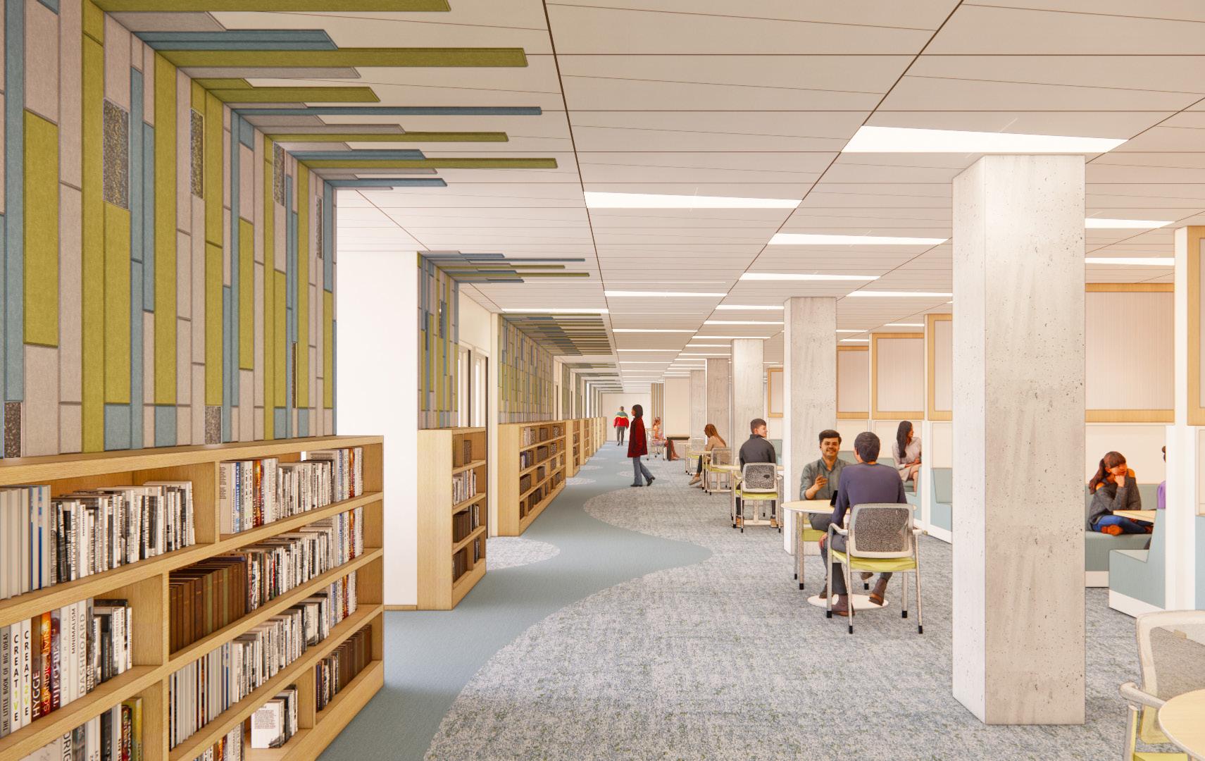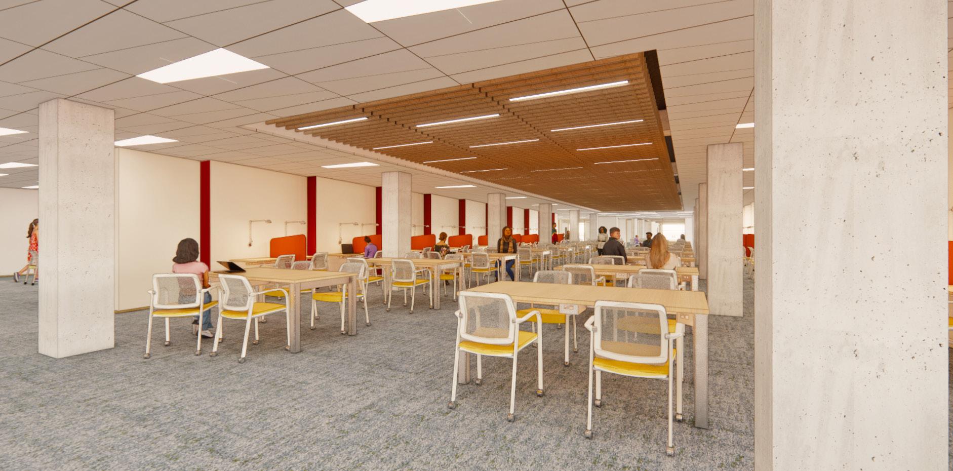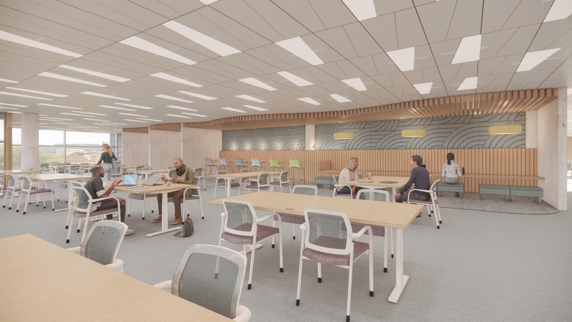 In a effort to control noise and increase use of the entire space it is separated it into zones. Zones are categorized by amount of people studding and furniture reflect these patterns.