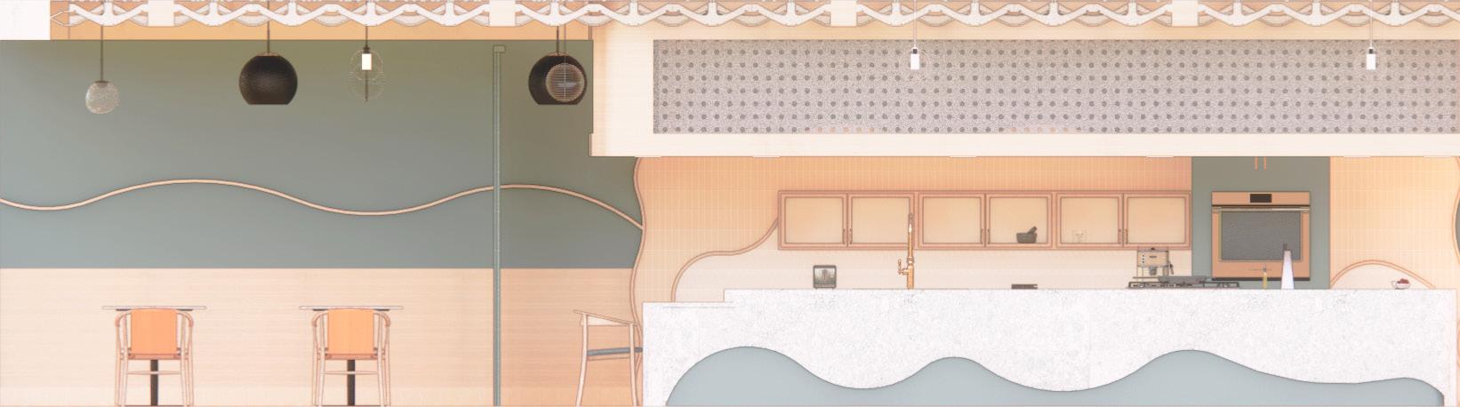4th Floor Cultural Kitchen: North Wall Rendered Elevation *NTS