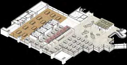 In a effort to control noise and increase use of the entire space it is separated it into zones. Zones are categorized by amount of people studding and furniture reflect these patterns.