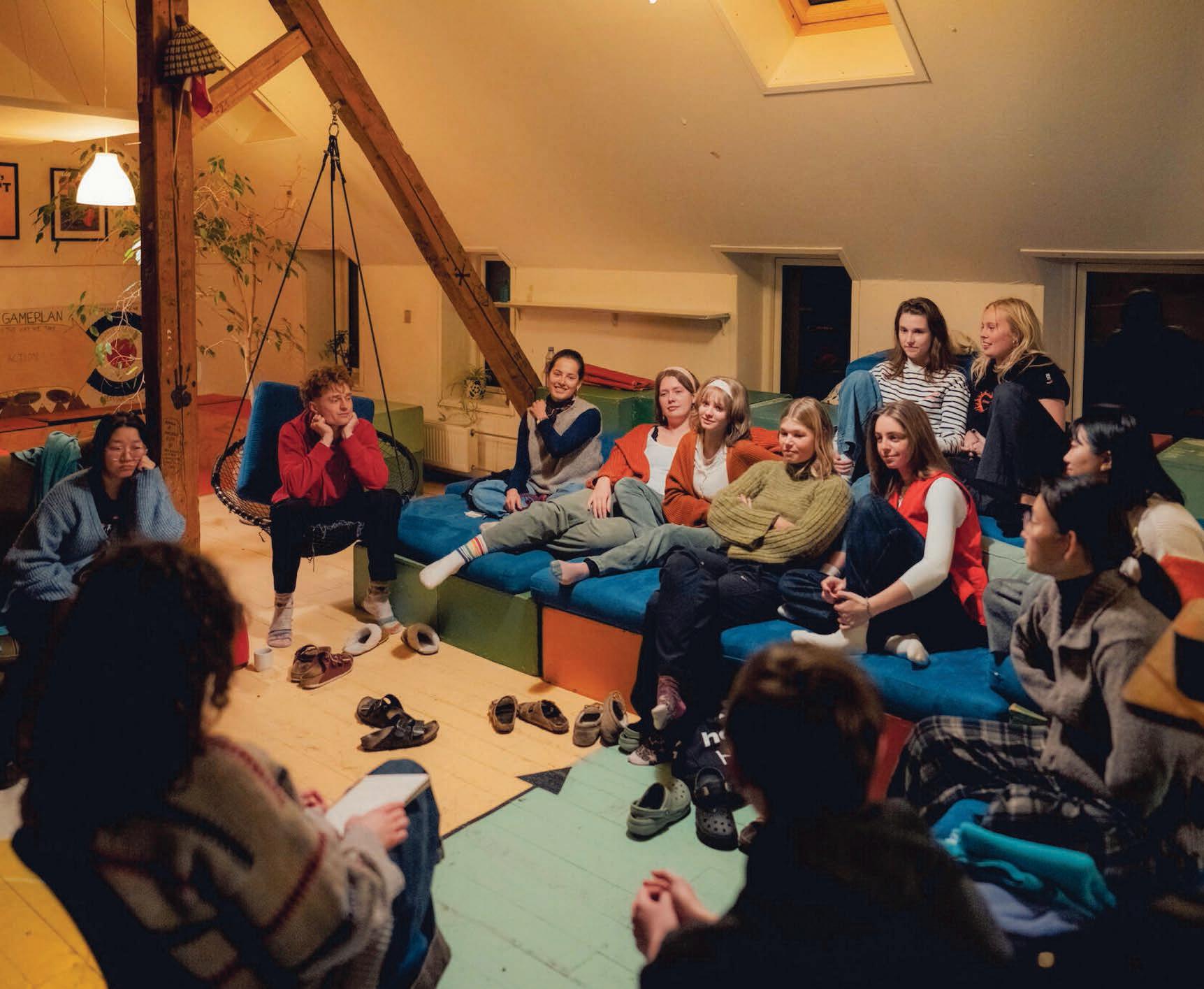 0 Højskolelivet kan være intenst, hvis man ikke er vant til at være tæt sammen med mange andre i længere tid. Her er det elever på Brandbjerg Højskole, der i marts var samlet for at diskutere de aktuelle nyheder. FOTO: