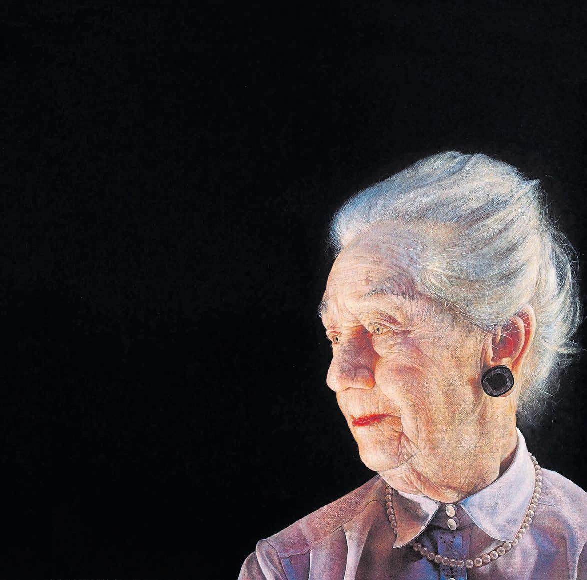 0 Thomas Kluge etablerede hurtigt i 1990’erne et navn som portrætmaler. Maleriet fra 2002 forestillende ”Farmor” er båret af en stor kærlighed.
