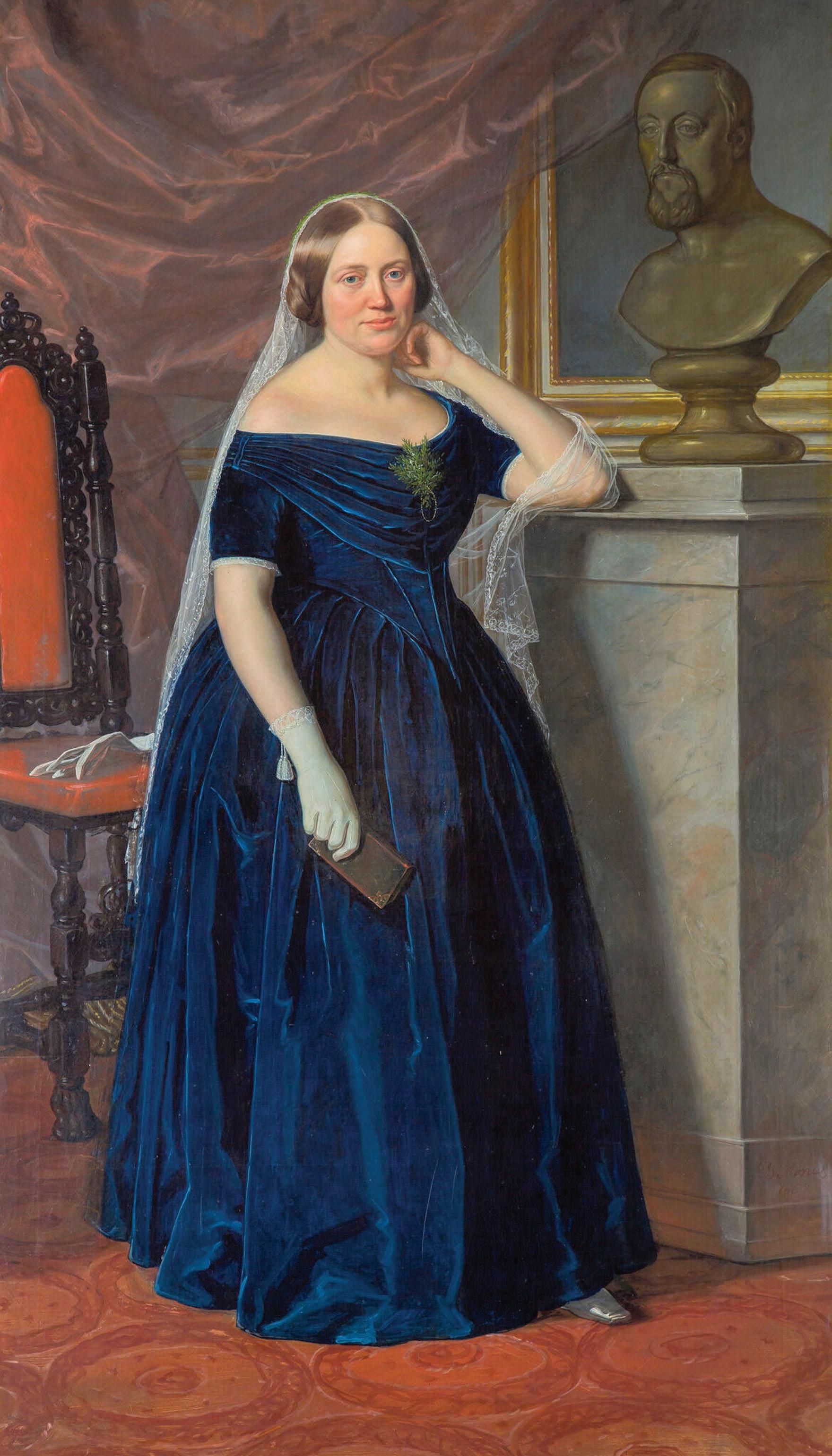 4 Det officielle bryllupsbillede, som er malet af David Monies (1812-94) i 1850, viser kun grevinde Danner. Frederik VII optræder indirekte i form af en buste. Man ville ikke anerkende brylluppet mellem en konge og en simpel kvinde af folket. FOTO: HENRIK LEDET