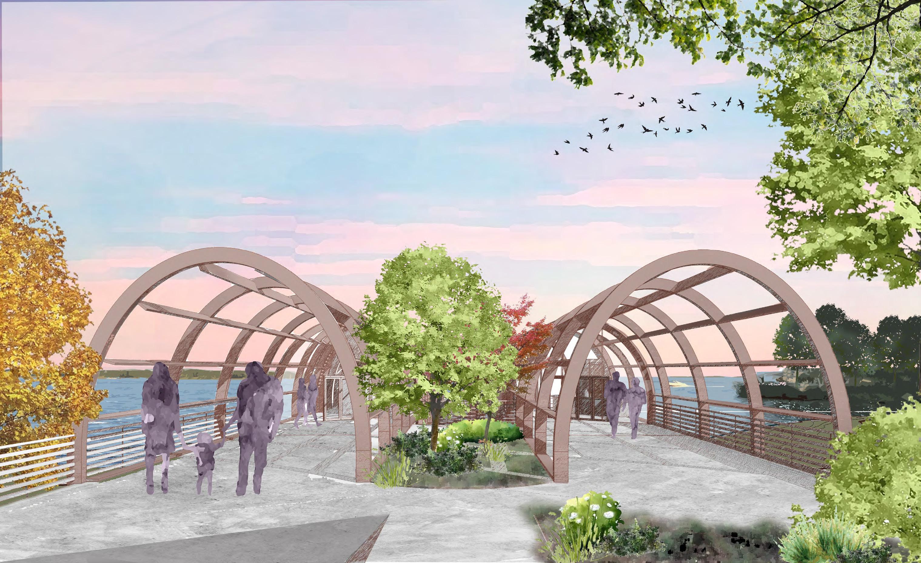 Haven Crossing is a mixed-use housing and community program integrating a safehouse, clinic, and shared civic space within a layered courtyard framework. Spatial organization separates secure residential zones from public functions while maintaining visual continuity and shared access to landscape.
