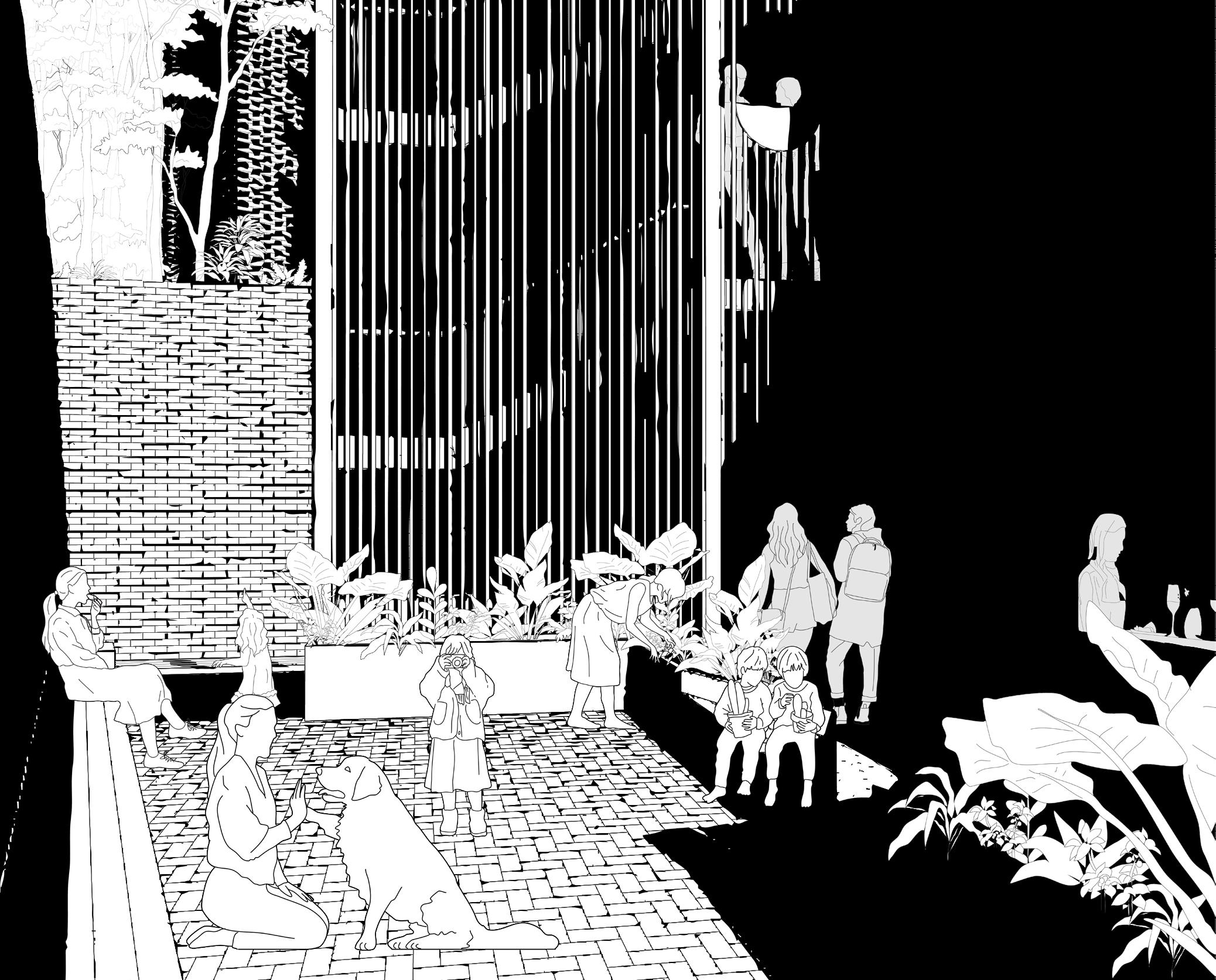 Ground-level commercial space activates the street, while layered residential volumes establish vertical community through light, ventilation, and landscape. Façade depth and material transitions express structural logic, reinforcing density as both human-scaled and spatially generous.