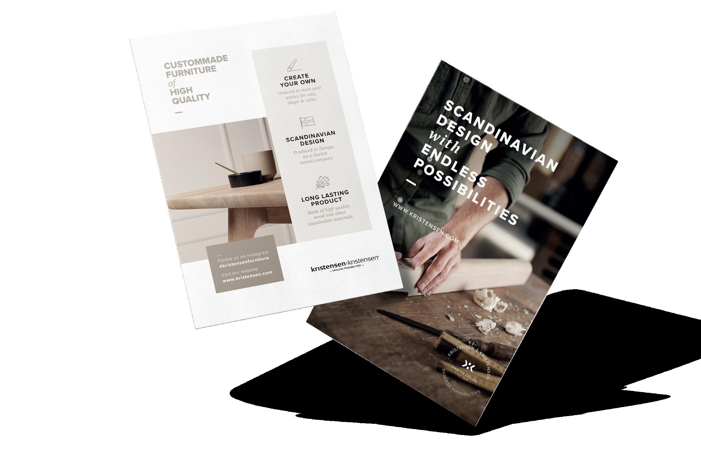 A5 flyer thats tells the brand values and key selling points behind Kristensen & Kristensen. Item no.: KIN-FLYER23 _ FREE OF CHARGE