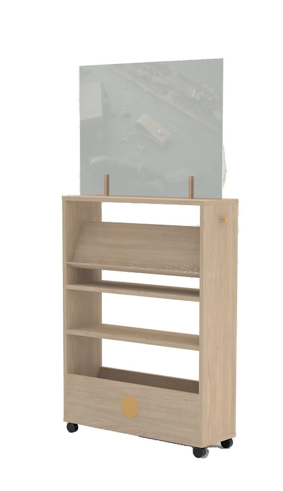 This trolley both acts as a wall / a room divider and contains wood samples and more.