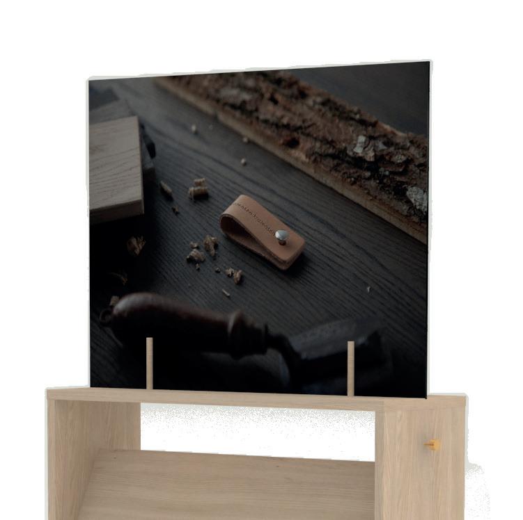 All ash-, oak- and finish samples suited for the trolley or wall rack. Size 15x2 H30 cm.