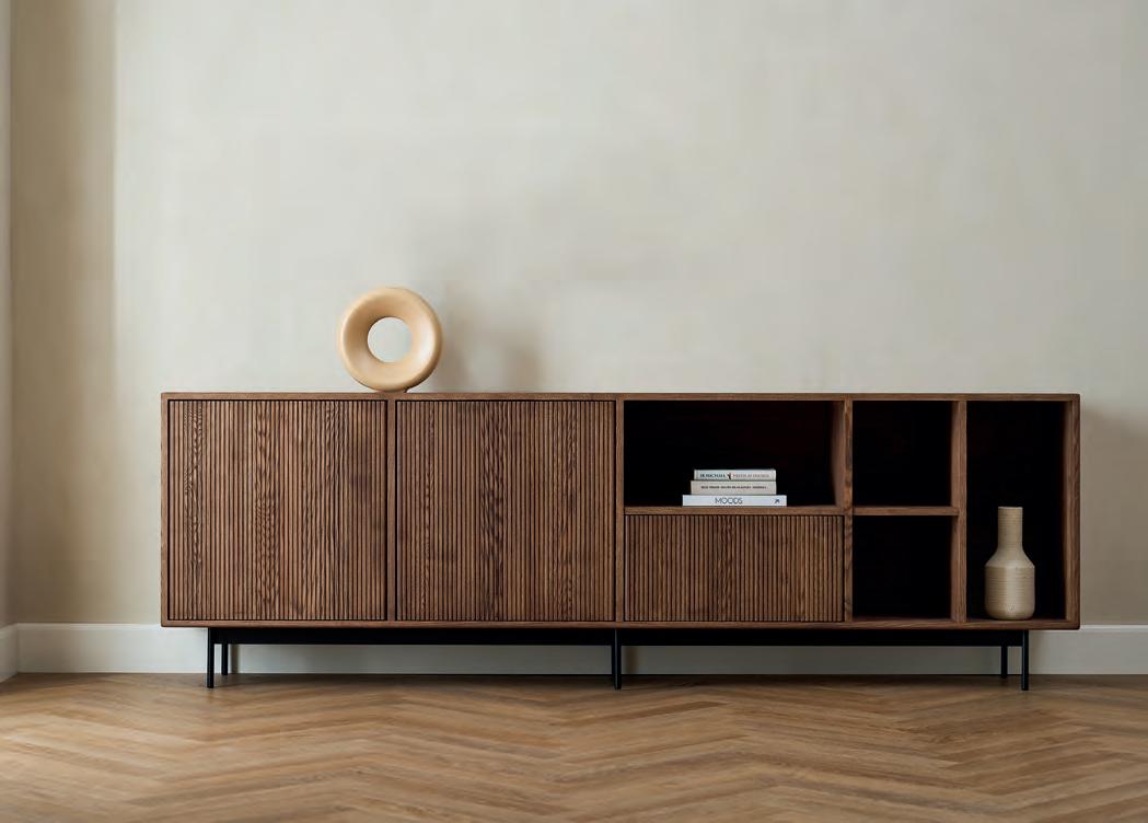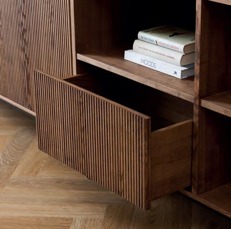 Create a striking focal point while keeping things organized with these storage units that combine functionality and design. The characteristic ribbed fronts and refined finish give the furniture an exclusive look that stands out and adds both style and structure to the room.