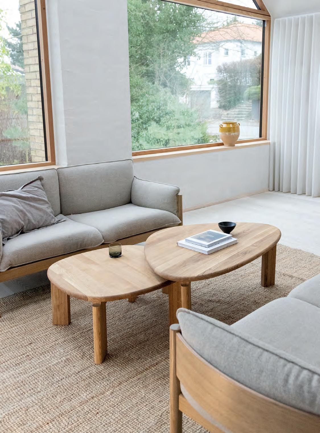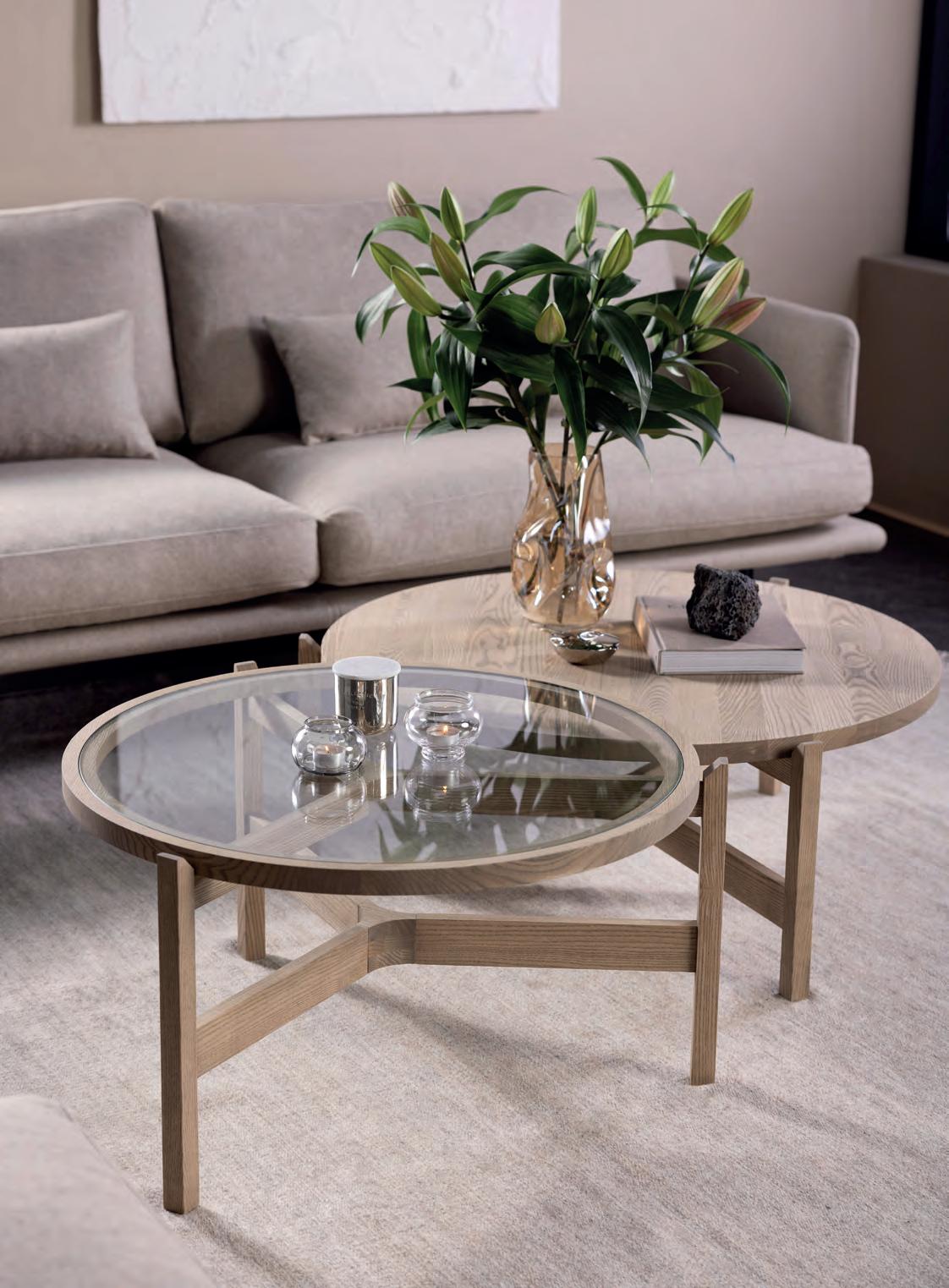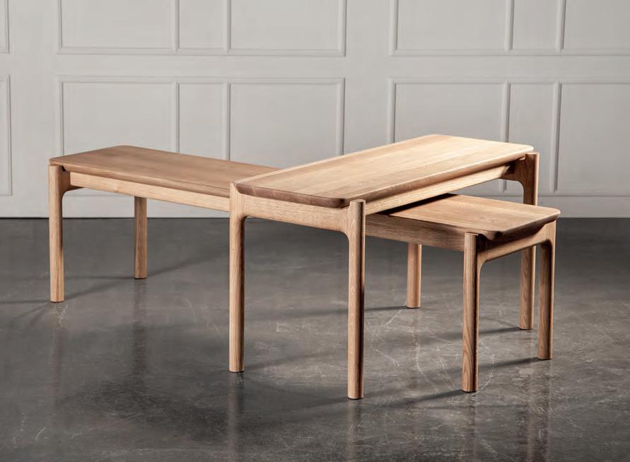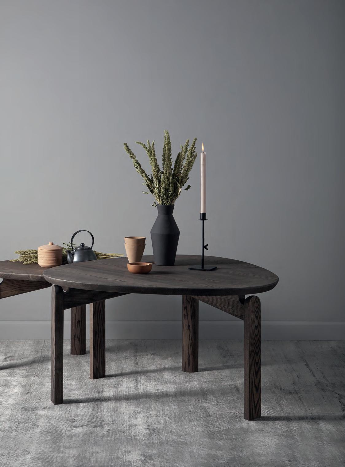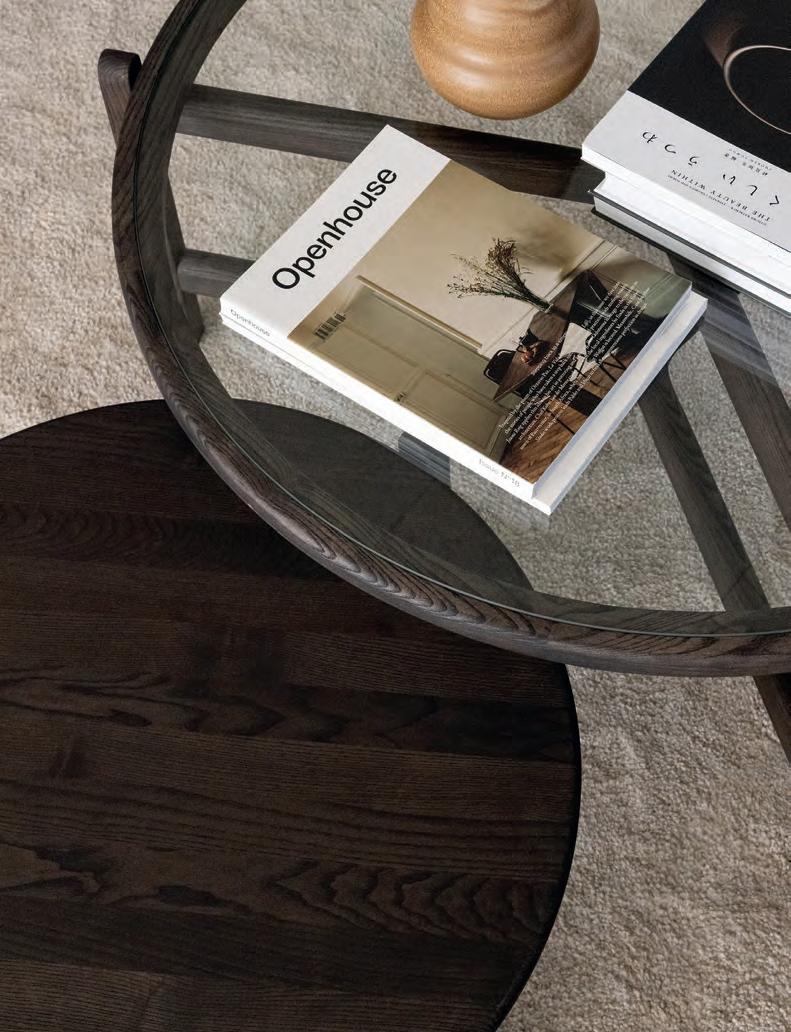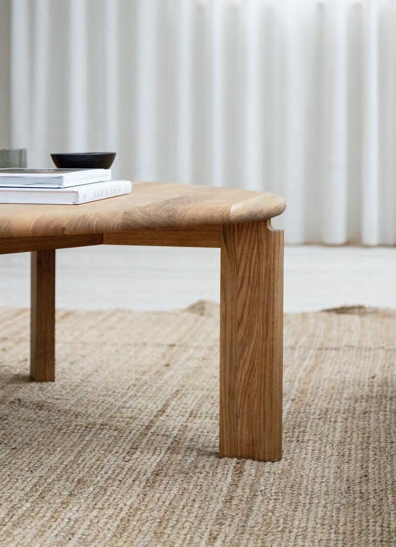The LONGBOAT round coffee table is a striking piece that combines solid wood craftsmanship with flowing, rounded forms inspired by historic ships.
