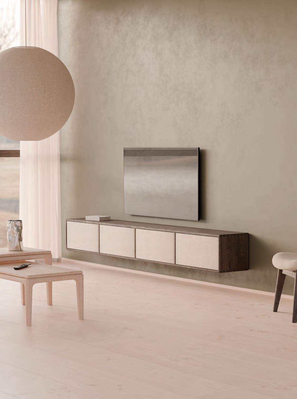 OPTIONS HI-FI-SIDEBOARD OH4A 250x34 H33 cm wallmounted with 4 f lip-doors in C15 ash / Fabric Sand
