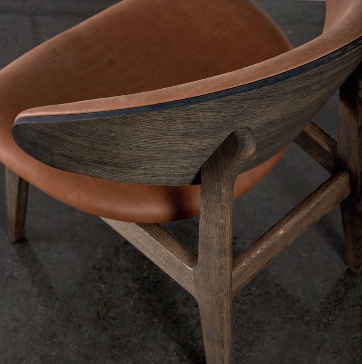 The RAM lounge chairs are available with two back options: the ‘Shell’ features a sleek wooden back, while the standard version comes fully upholstered for added comfort.