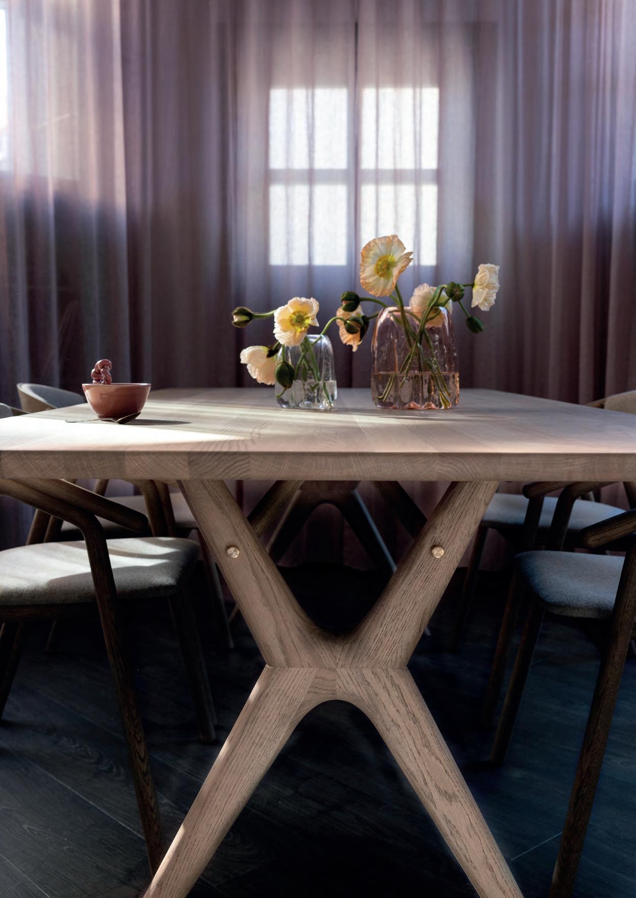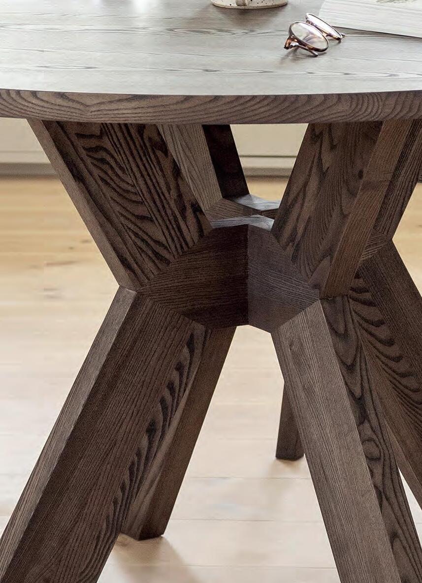 The MONOGRAM dining table combine modern and rustic design with timeless appeal. Featuring a robust cross-base crafted from solid wood, the tables showcase true craftsmanship and highlight the natural beauty and character of the wood.