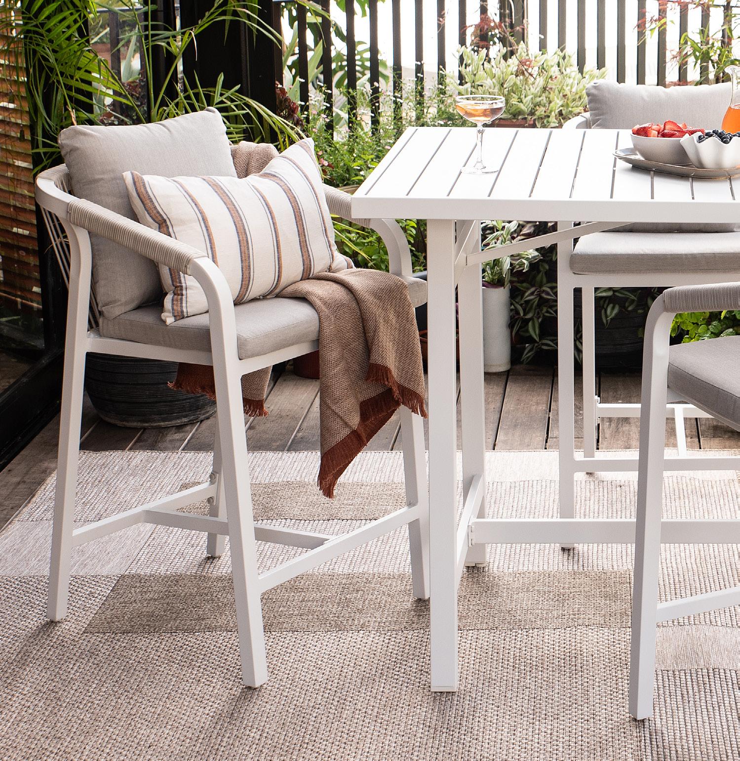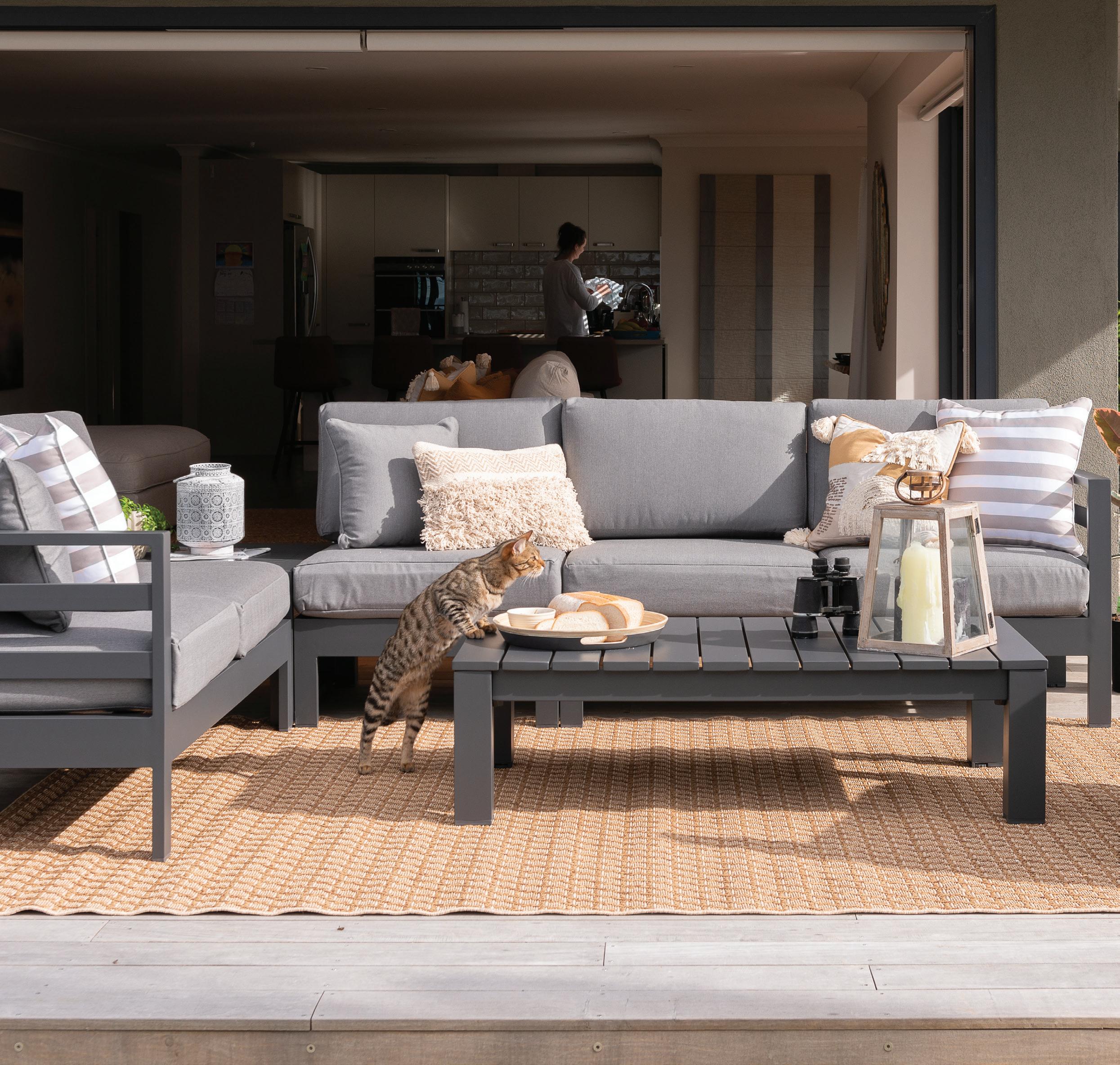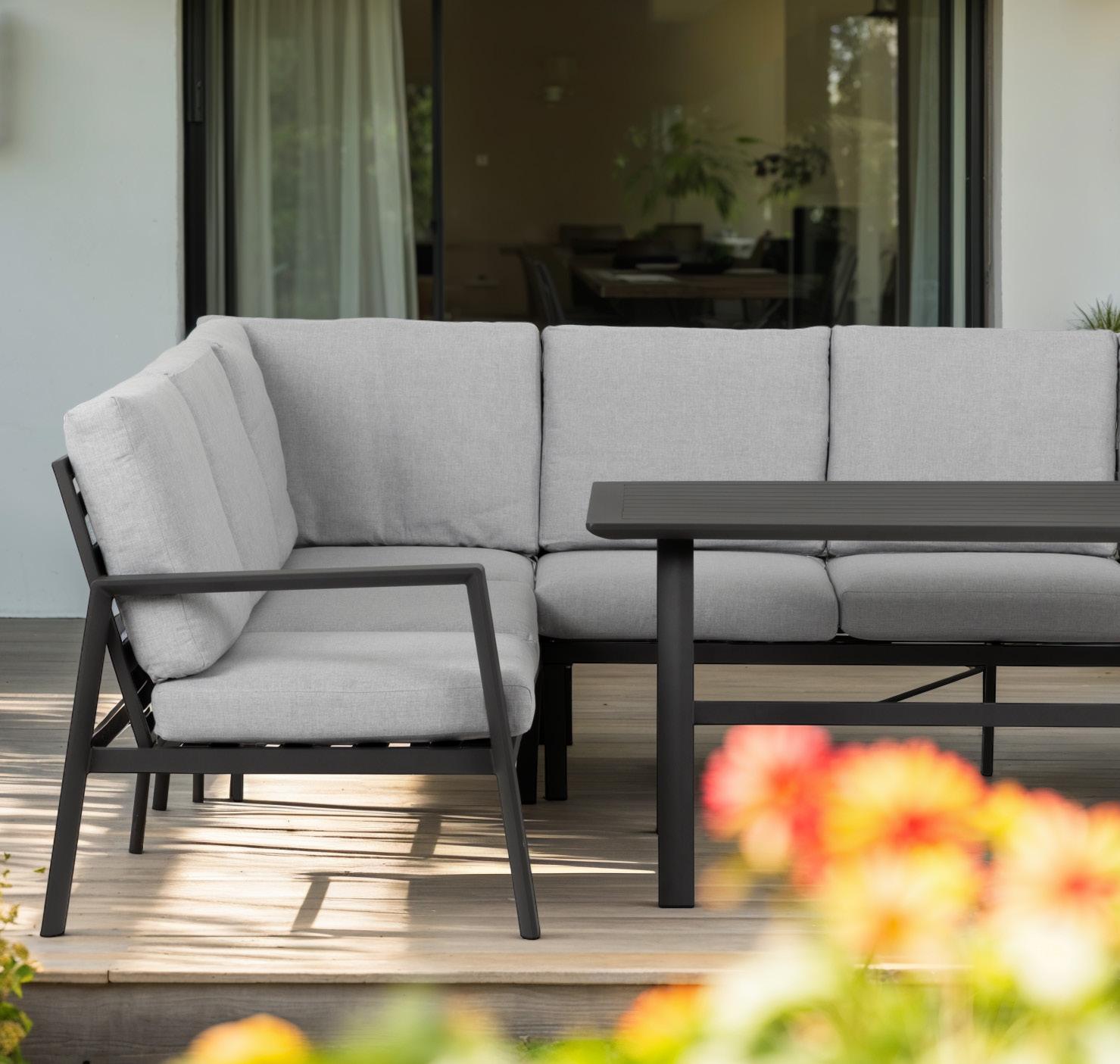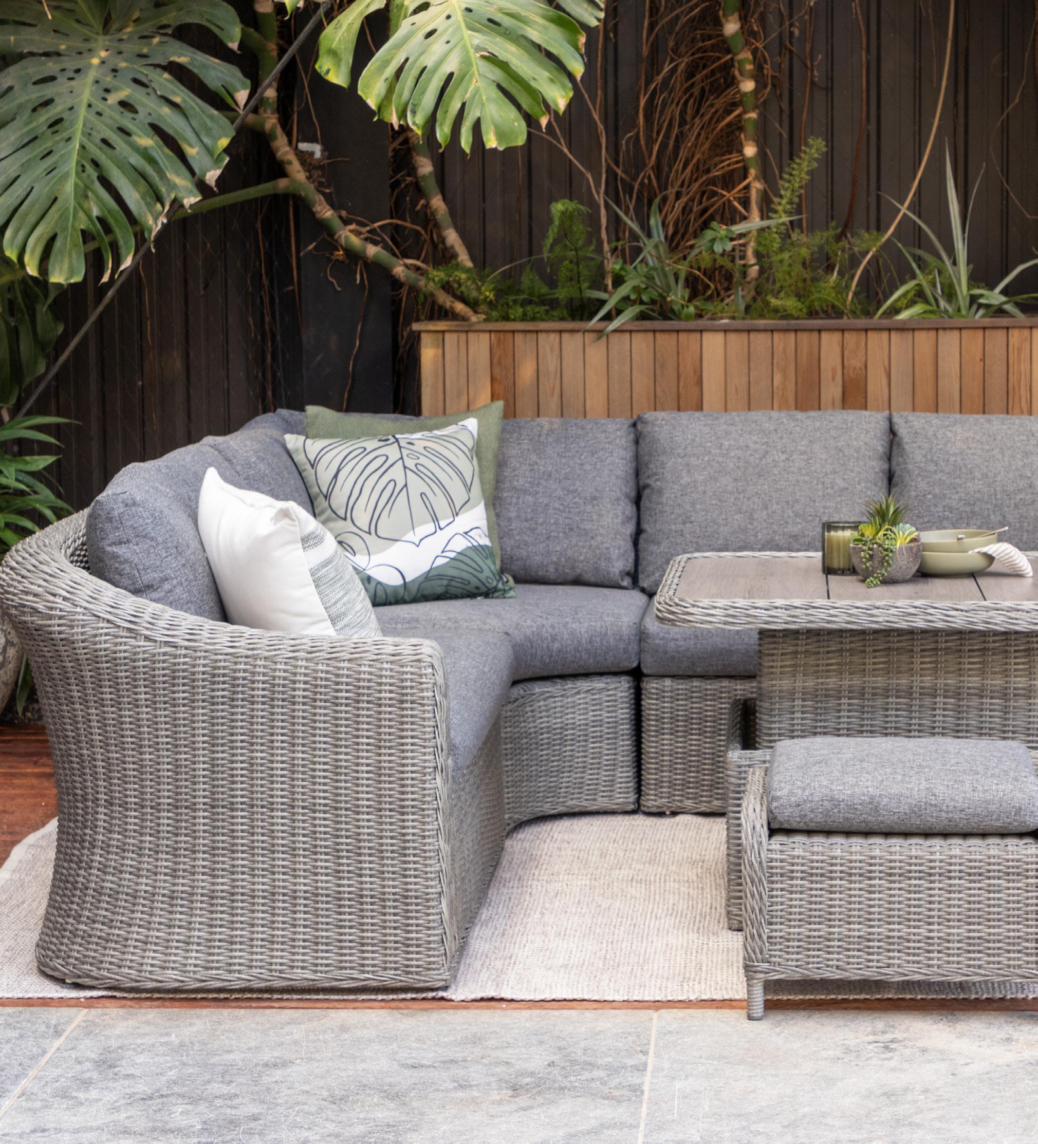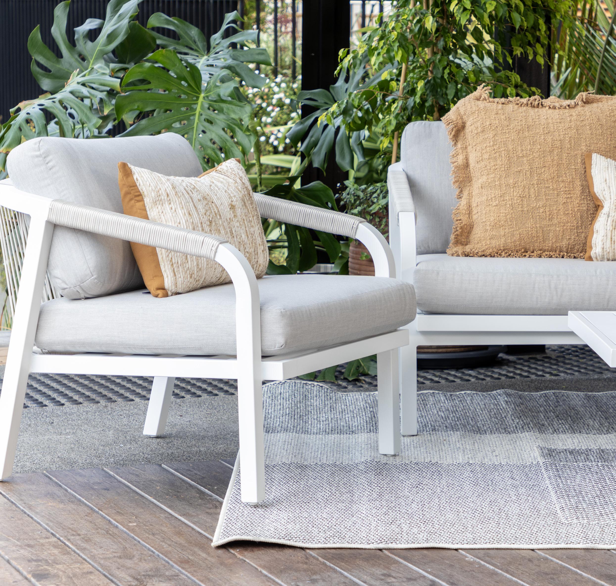 Product care: To keep your setting looking fresh, we recommend bringing cushions inside or store in a cushion box, and cover the aluminium frame. Cushions left outside for sustained periods will potentially fade.