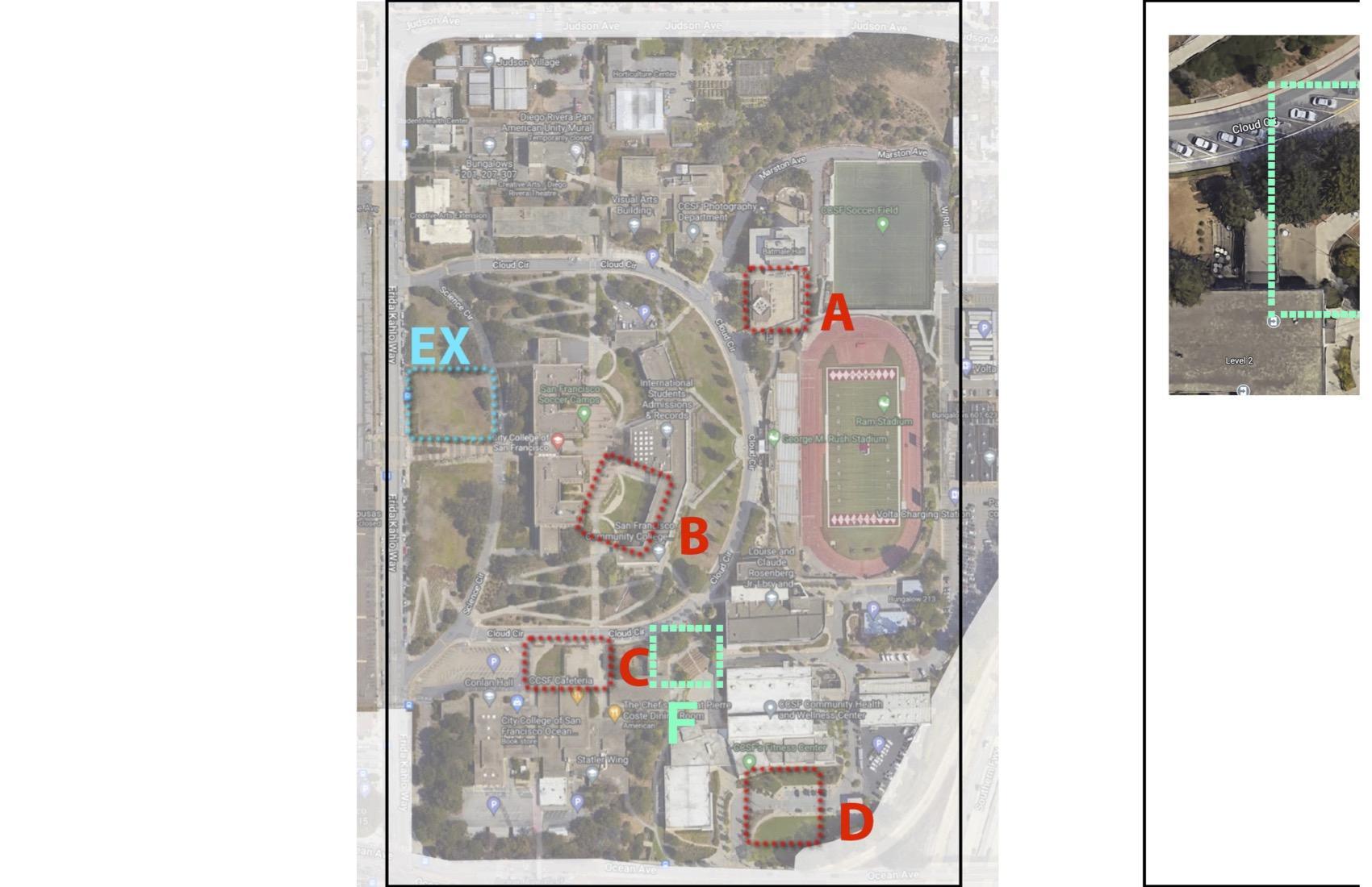 The Sidewalk between the site and Cloud Circle is regularly used by students and passersby. In the middle of the site is a paved pathway from the wellness center and the sidewalk that links the rest of CCSF’s infrastructure.
