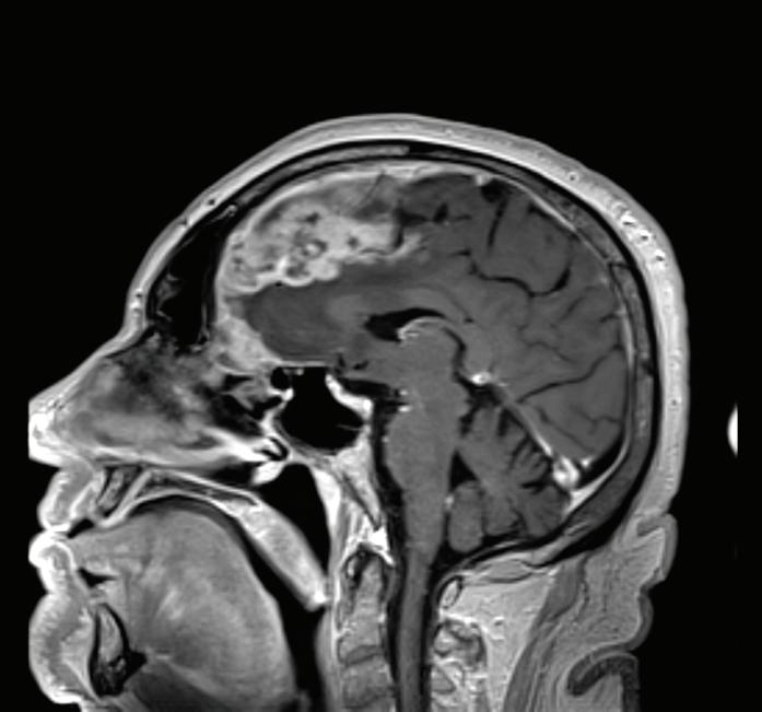 лен кортекс. Патологичната тъкан интимно адхерира към мозъчния кортекс, изцяло ангажирайки пиа матер, при което опитът за отстраняването ѝ бива съпроводен от тотална и травматична деваскуларизация на подлежащото сивото вещество. Аналогична е и съдбата на по големите артериалните съдове от периневралната васкуларна територия в менингиалния компартмент, както и на кортикалните и мостовите вени. Дифузността на процеса и гореописаните му инвазивни характеристики предопределят лимитирането на интервенцията до недеструктивни обеми с осъществяването на разширена биопсия от непосредствено достъпния регион. Общото, вирусологичното и микробиологичното изследвания на цереброспиналната течност не намират съществени отклонения от нормата. При цитологичния анализ не се установяват туморни клетки, а единствено лимфоцити и моноцити.